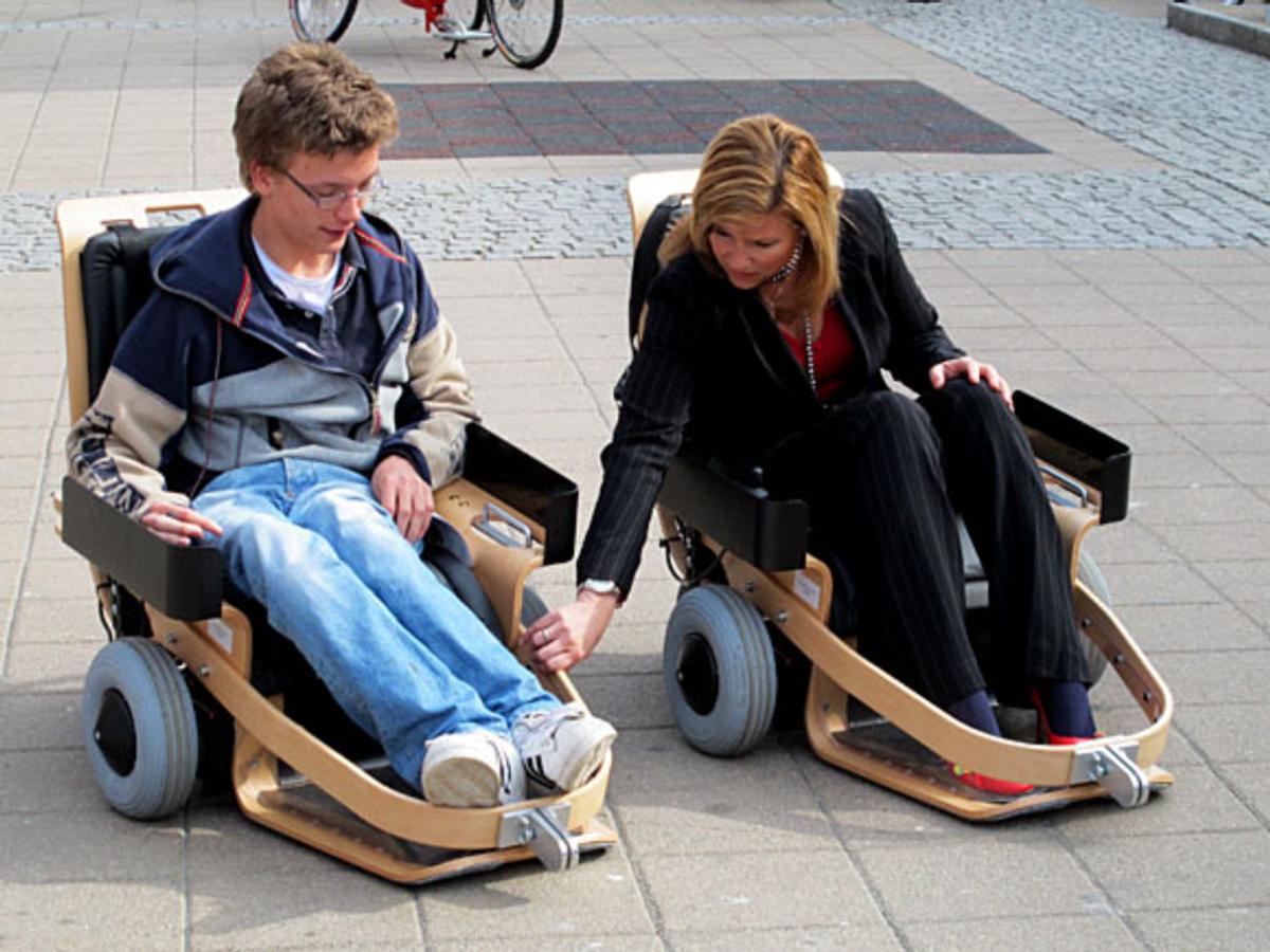 Med Brunsvik og Jensen vel av stad fekk Prinsessa høve til å prøve elektrisk sportsstol. Jørgen H. Johansen demonstrerte stolen som han og lagkameratane bruker når dei speler EL-innebandy.