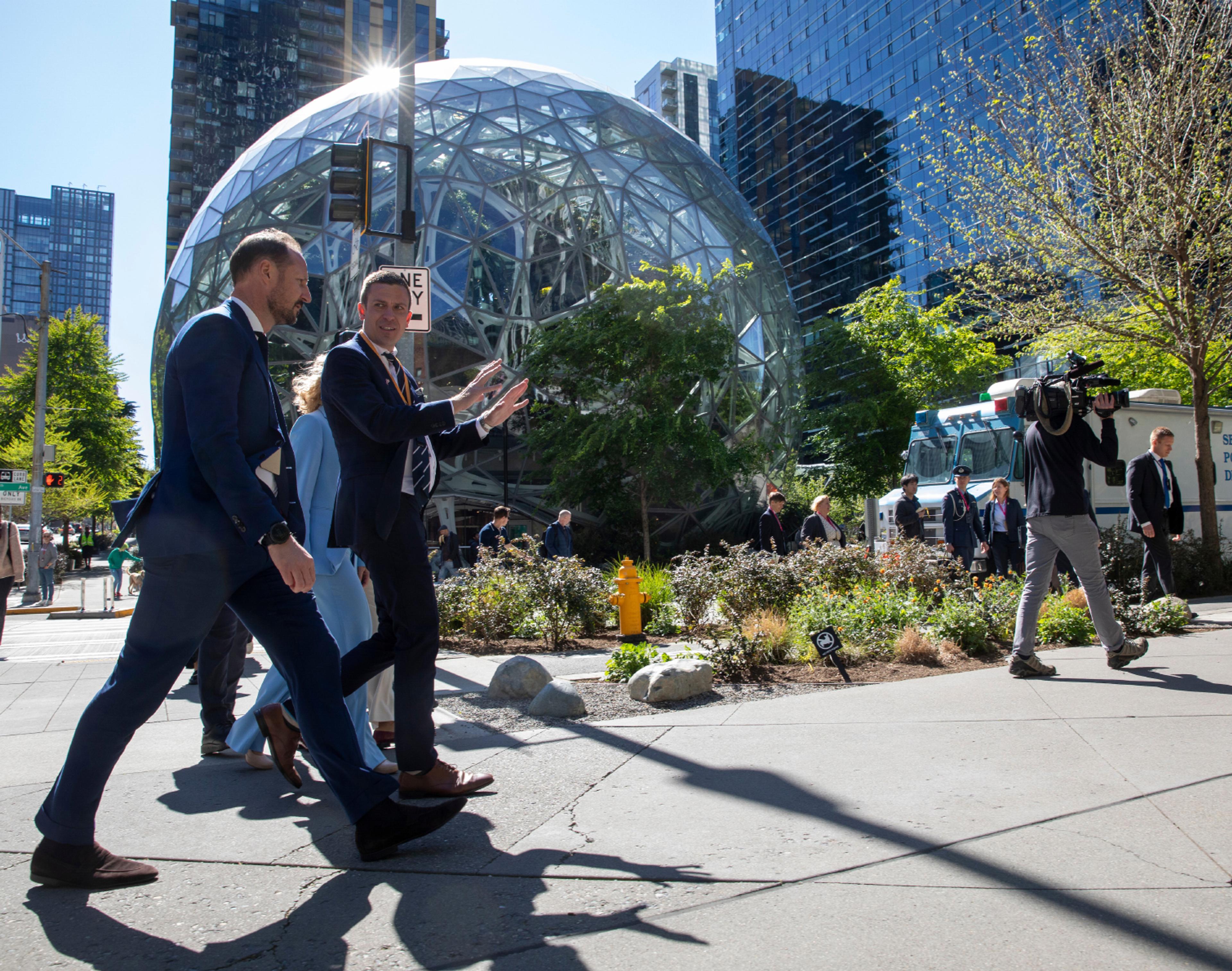 Washington er hjemstaten til to av verdens største teknologiselskaper. Kronprins Haakon besøkte Microsoft og Amazon sammen med digitaliseringsministeren og representanter fra norsk næringsliv.