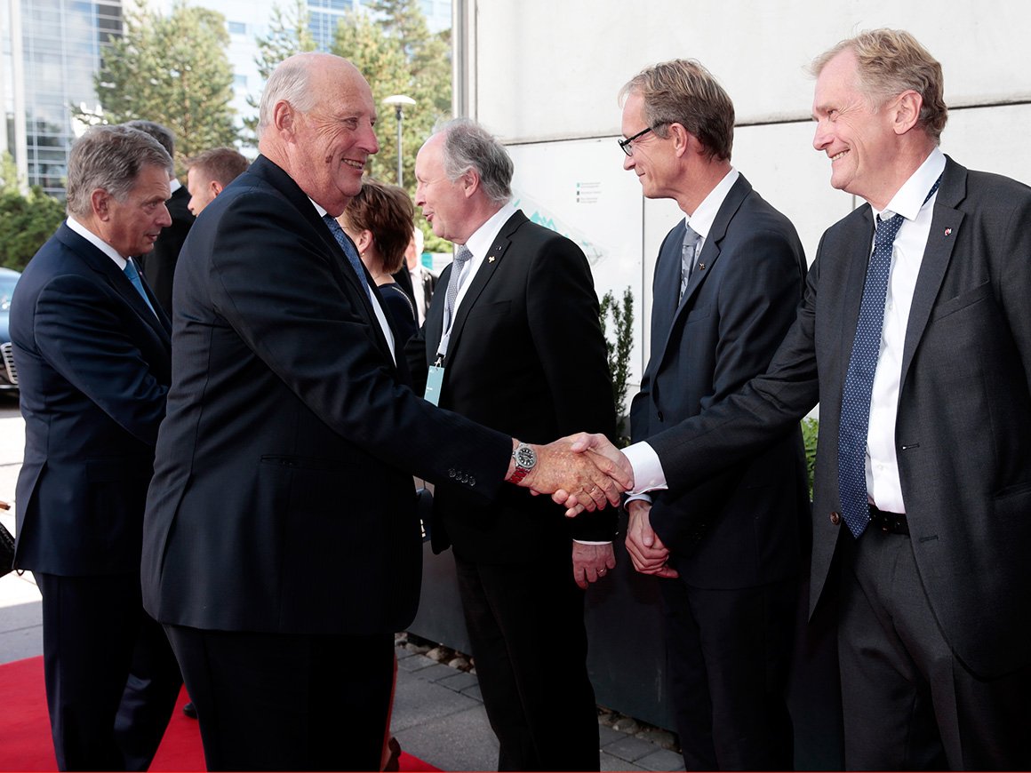 Deres Majesteter Kongen og Dronningen deltok på dagens finsk-norske næringslivsseminar sammen med det finske presidentparet. Etter åpningen fikk de en presentasjon av norsk forsvarsmateriell før det var tid for et nærmere møte med noen av framtidens teknologiske muligheter.