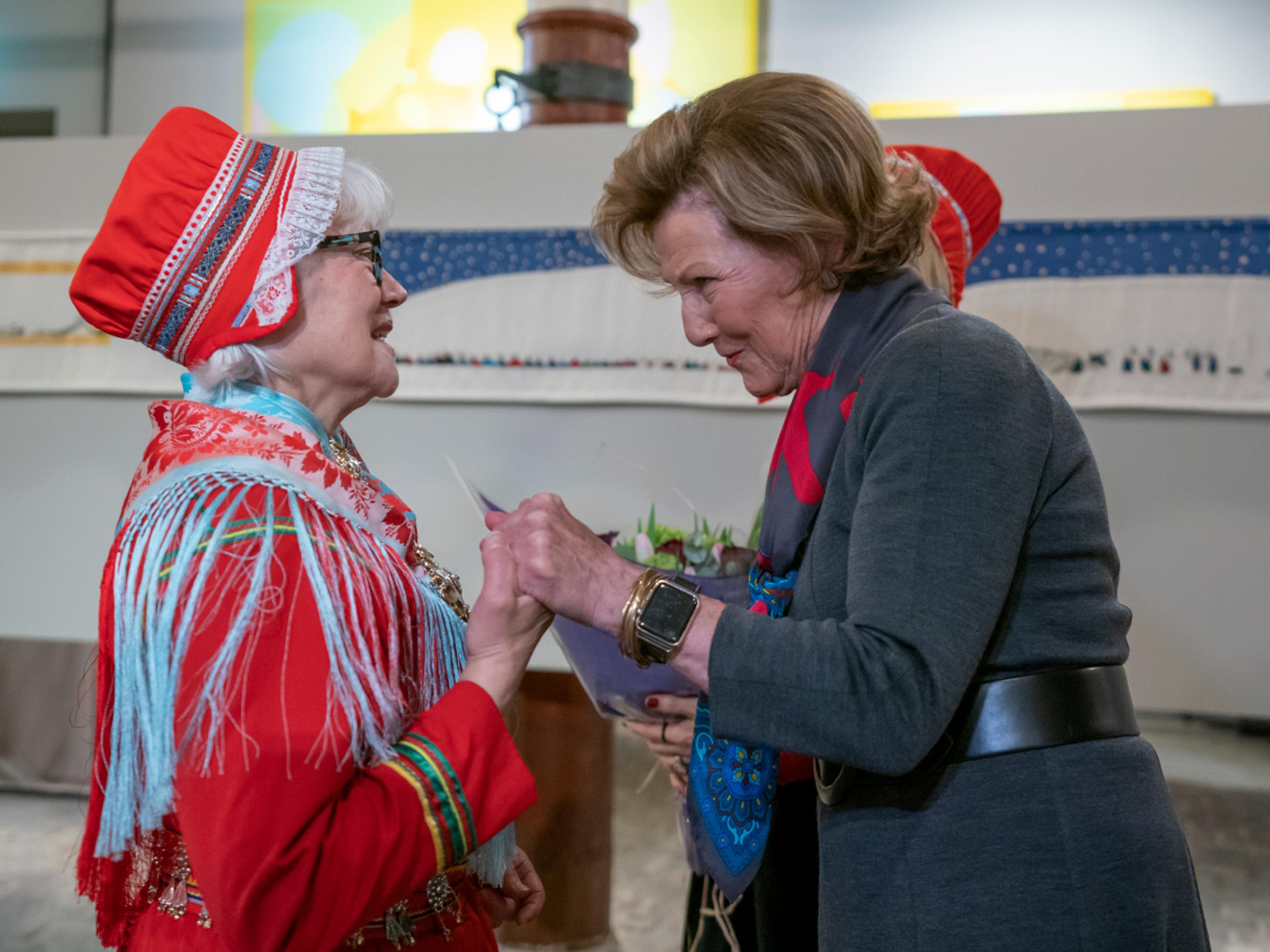 - Jeg håper at vi med denne utstillingen kan formidle noe av min begeistring for samisk kunst og kultur, sa Hennes Majestet Dronningen i sin velkomsttale, og delte flere av sine gode minner fra besøk til Sápmi.