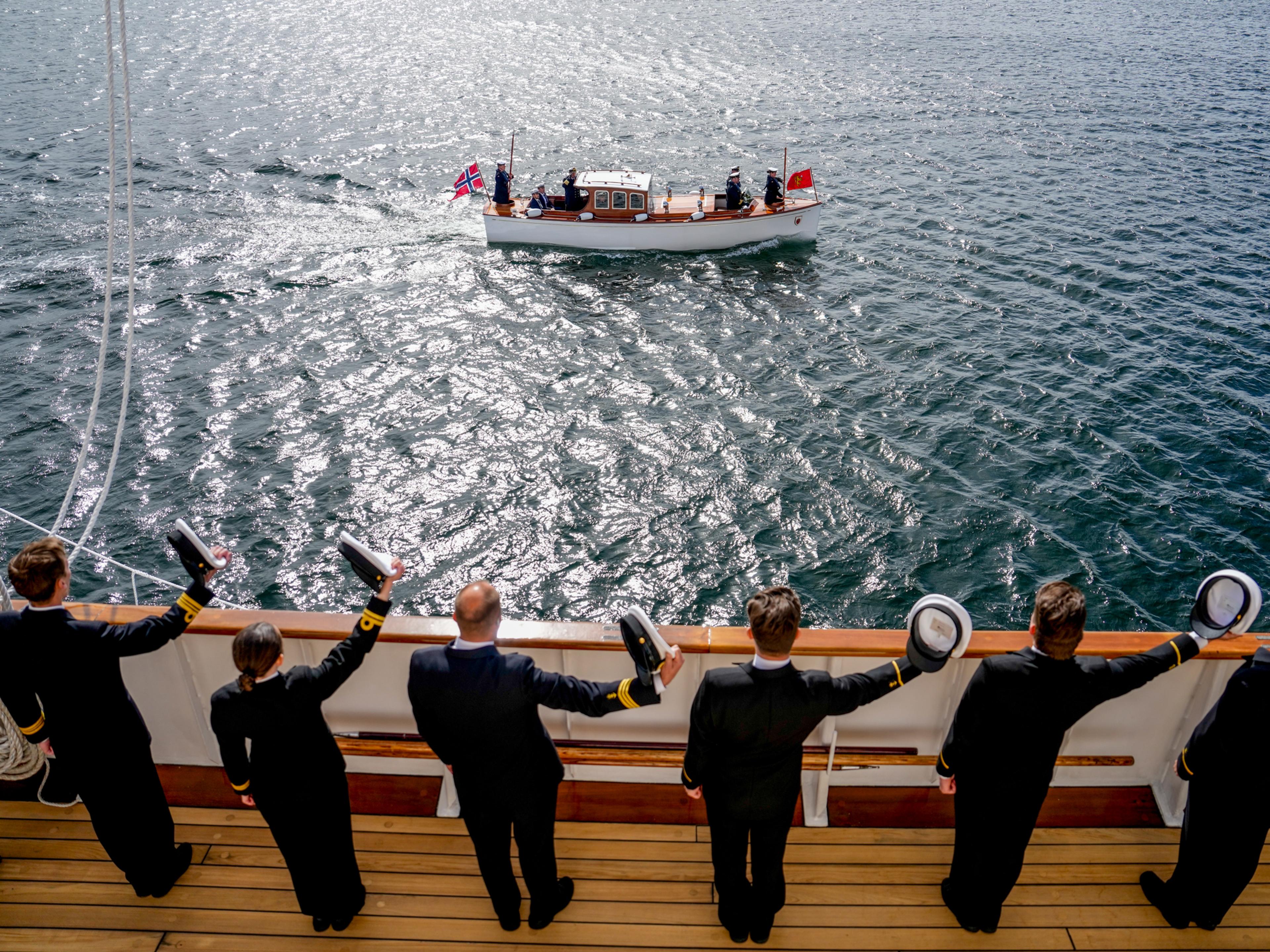 – Leve Kongen! Hurra, helsa mannskapet på styrbord side medan sjaluppen med Kongeparet og Kronprinsen skulle leggje til.