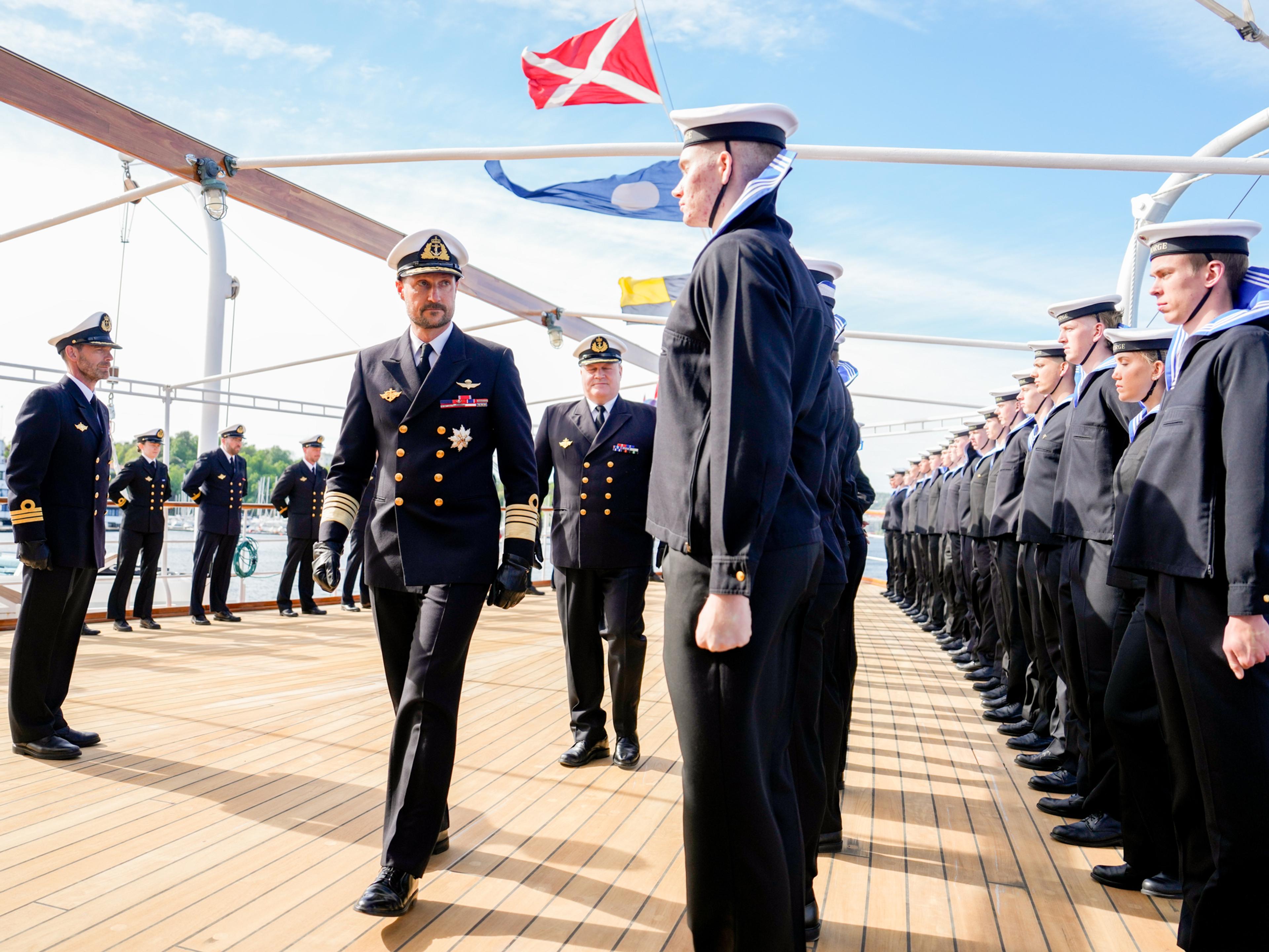 Under ombordstiginga inspiserte Kronprins Haakon mannskapet på akterdekket og uttrykte eit håp om at alle ville få ei god teneste om bord. Deretter var det inspeksjon av fartøyet.
