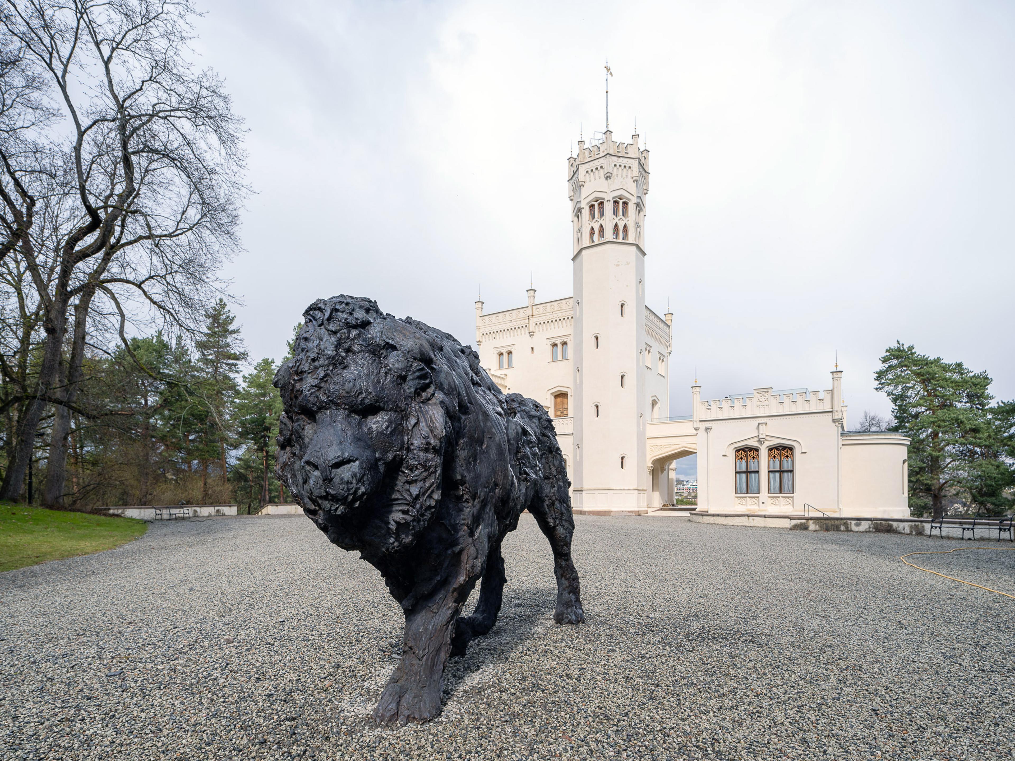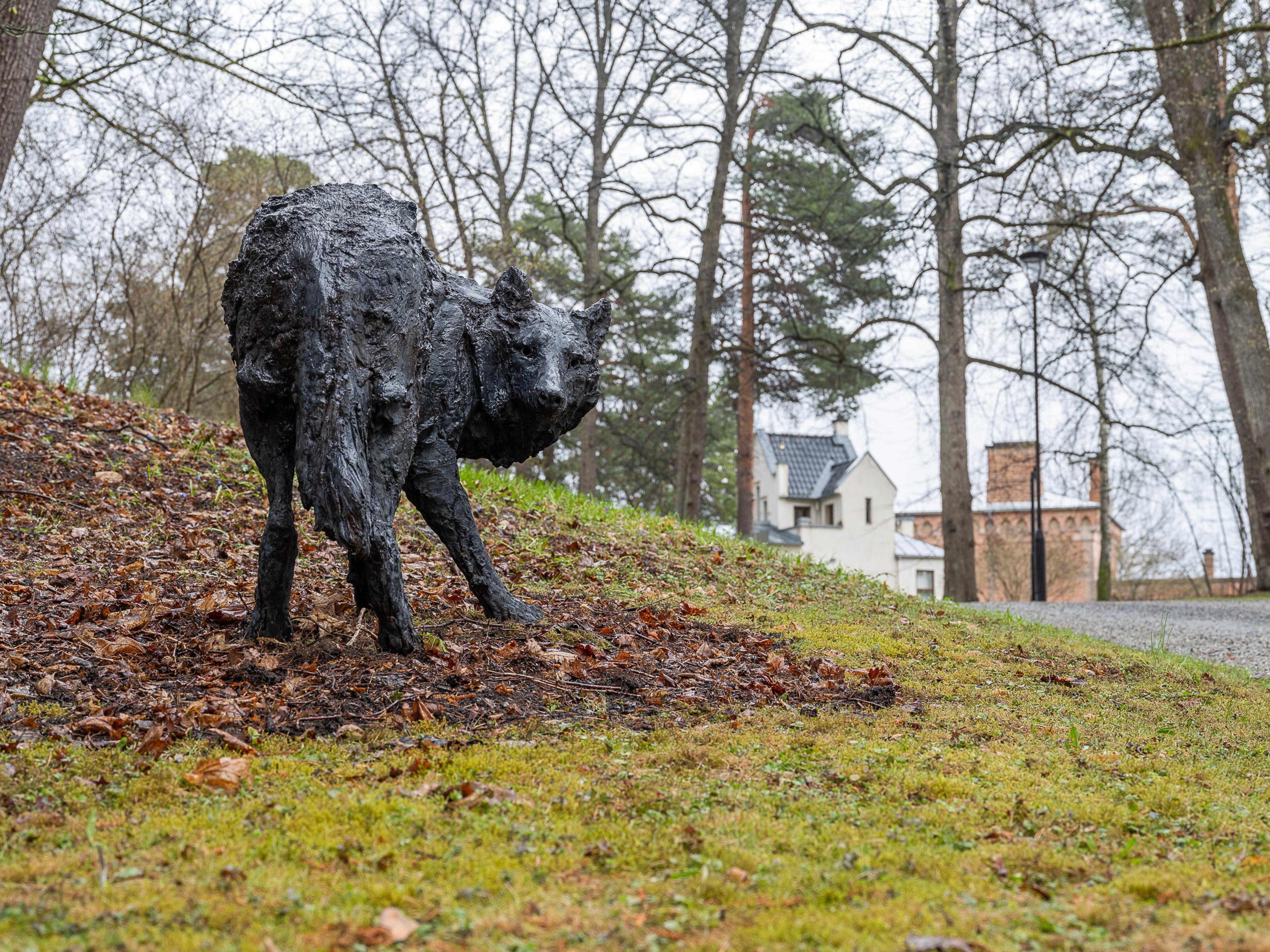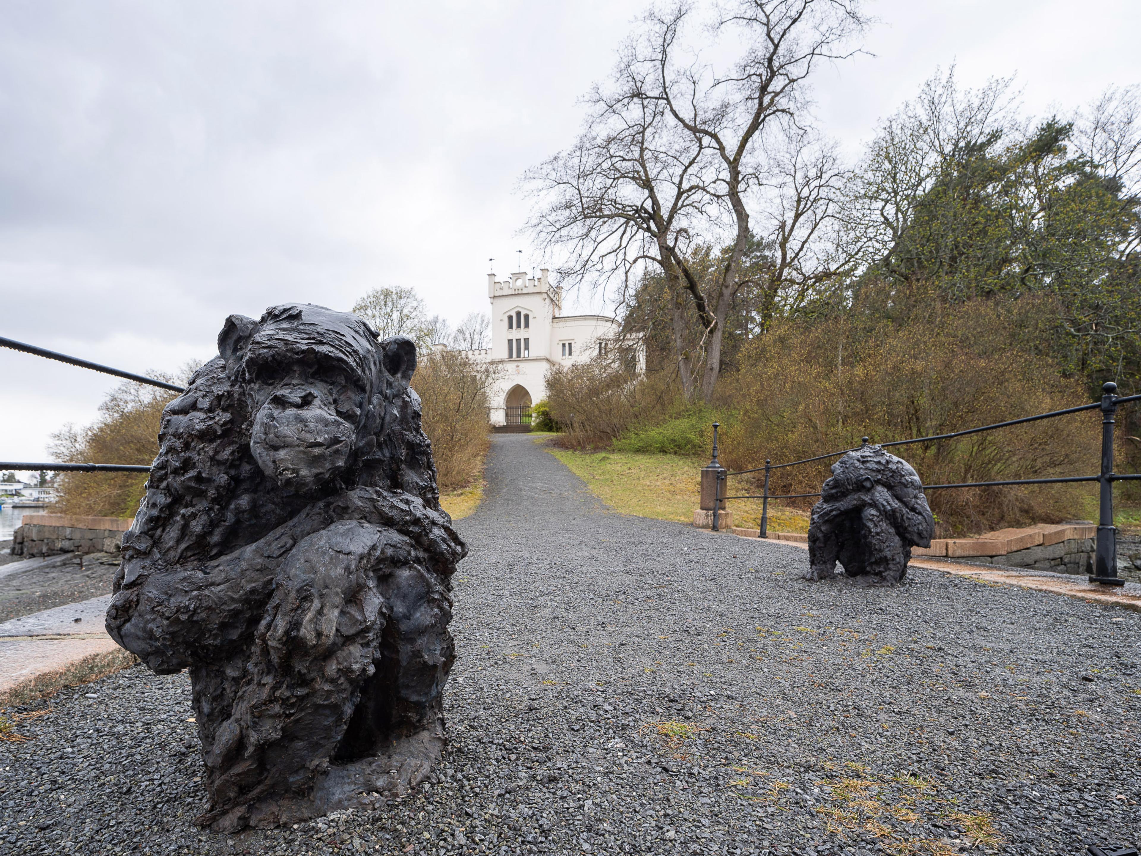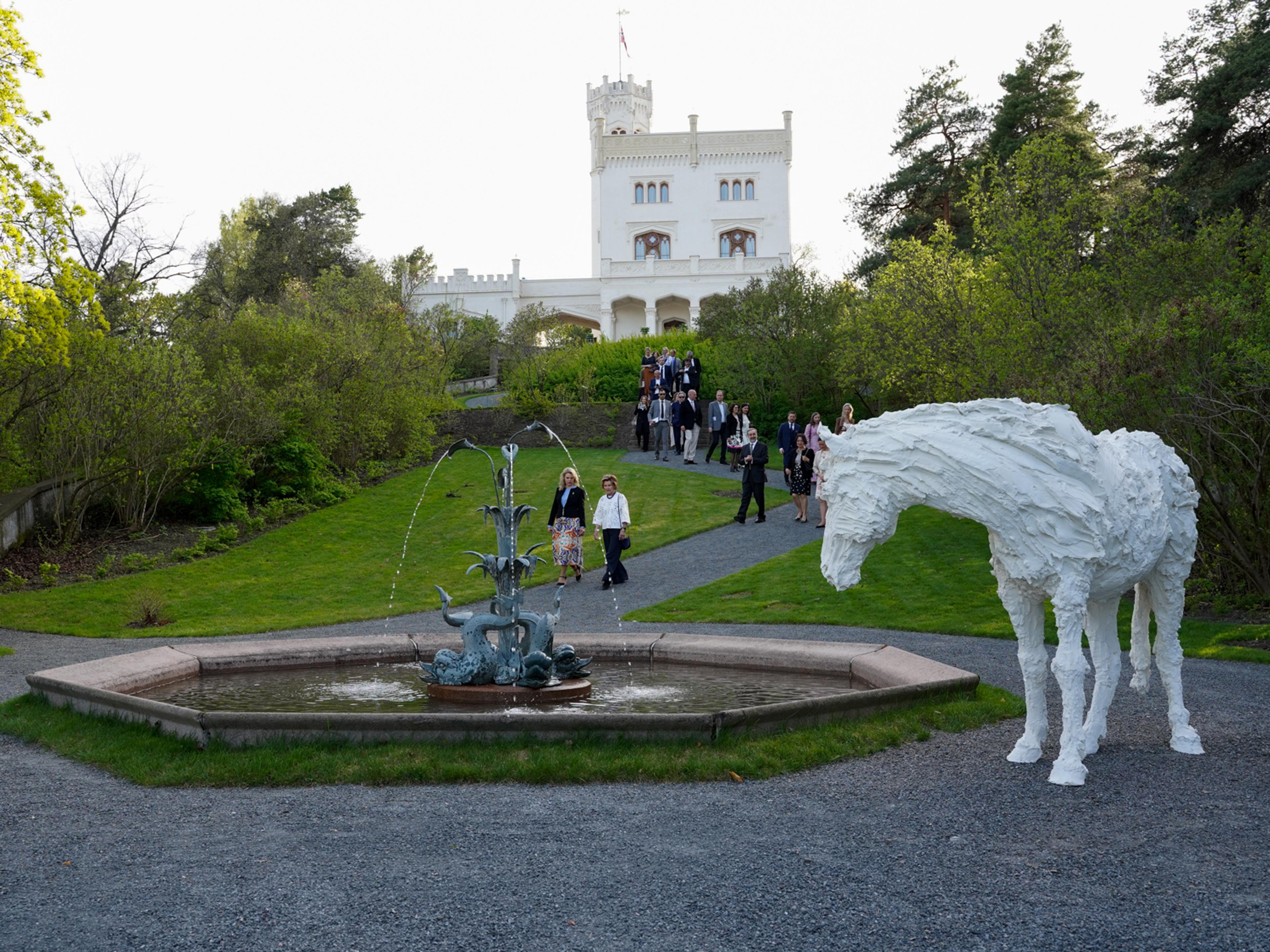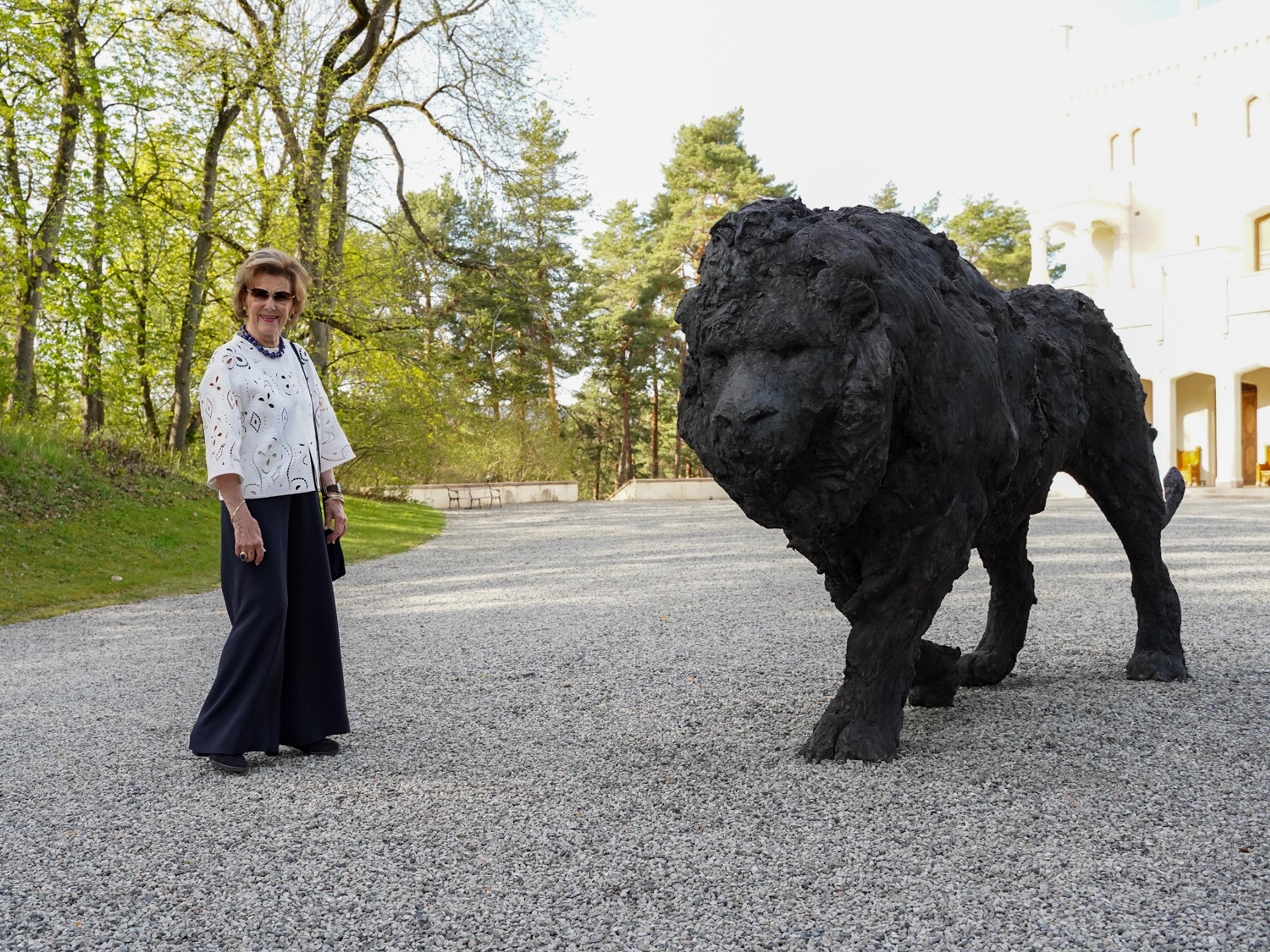 En rekke dyreskulpturer er plassert i parken omkring Oscarshall. Dronning Sonja og kveldens gjester fikk se nærmere på flere av skulpturene - ikke minst den majestetiske løven som vil møte alle som kommer til lystslottet i sommer.