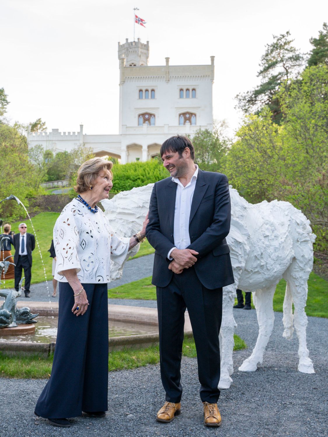 Hennes Majestet Dronningen var til stede da åpningen av årets publikumssesong på Oscarshall ble markert fredag kveld. Dette var også starten på en friluftsutstilling med ville dyr utformet av den italienske kunstneren Davide Rivalta.