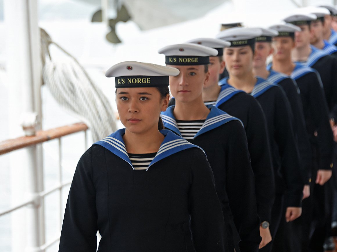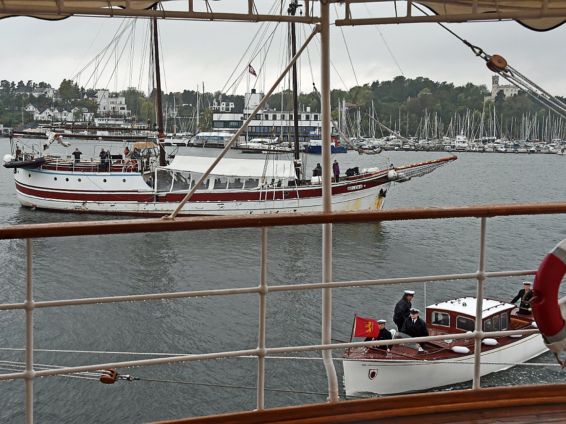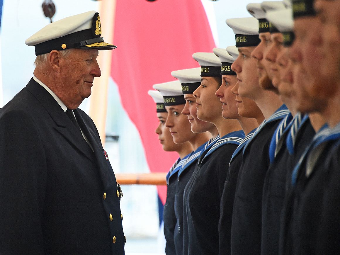 Hennes Majestet Dronningen var også til stede under debarkeringen, der Kongen inspiserte skipet og de begge takket mannskapet om bord for en flott og opplevelsesrik sesong med K/S Norge.
