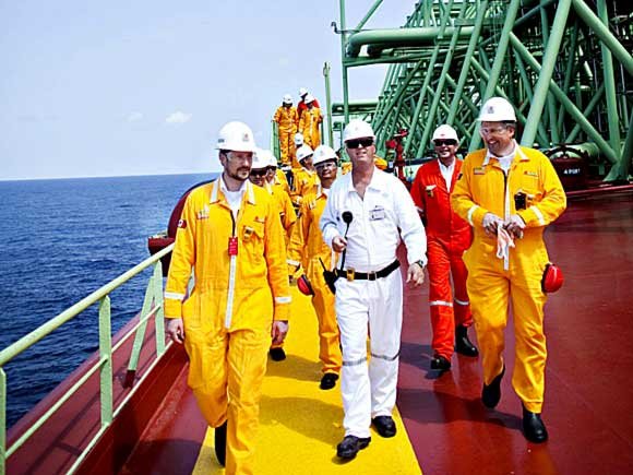Kronprins Haakon besøkte ein såkalla FPSO (Floating Production Storage and Offloading vessel) i følgje med blant anna olje- og energiminister Terje Riis-Johansen. Skipet er ått av den mexicanske statens oljeselskap Pemex, men 80 % av utstyret om bord er norsk, og eininga blir driven av BW Offshore (Bergesen).