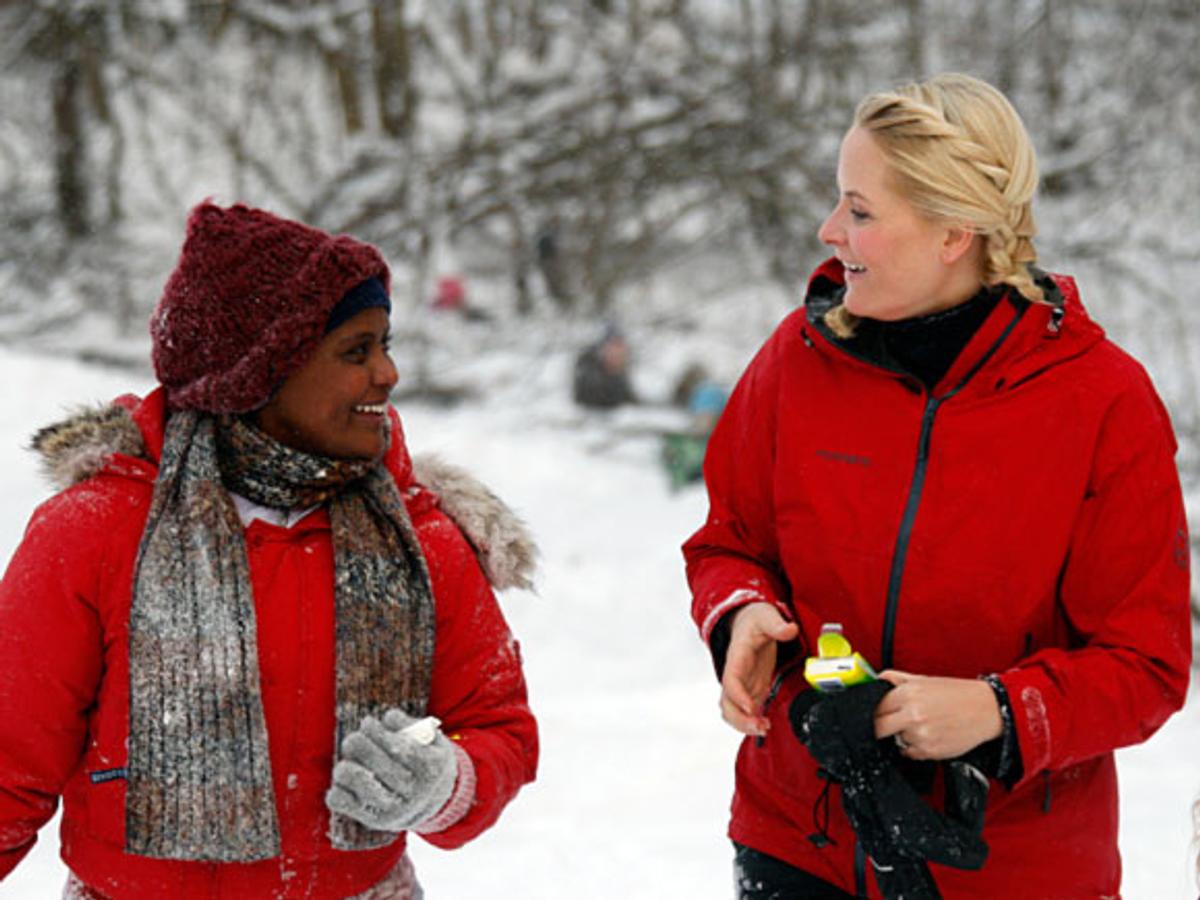 H.K.H. Kronprinsessa bidrog som skiinstruktør da ho besøkte skikurset Hvalstad mottakssenter heldt for unge asylsøkjarar søndag. Det var organisasjonen CHANGEweNEED som hadde teke initiativet til skidagen.