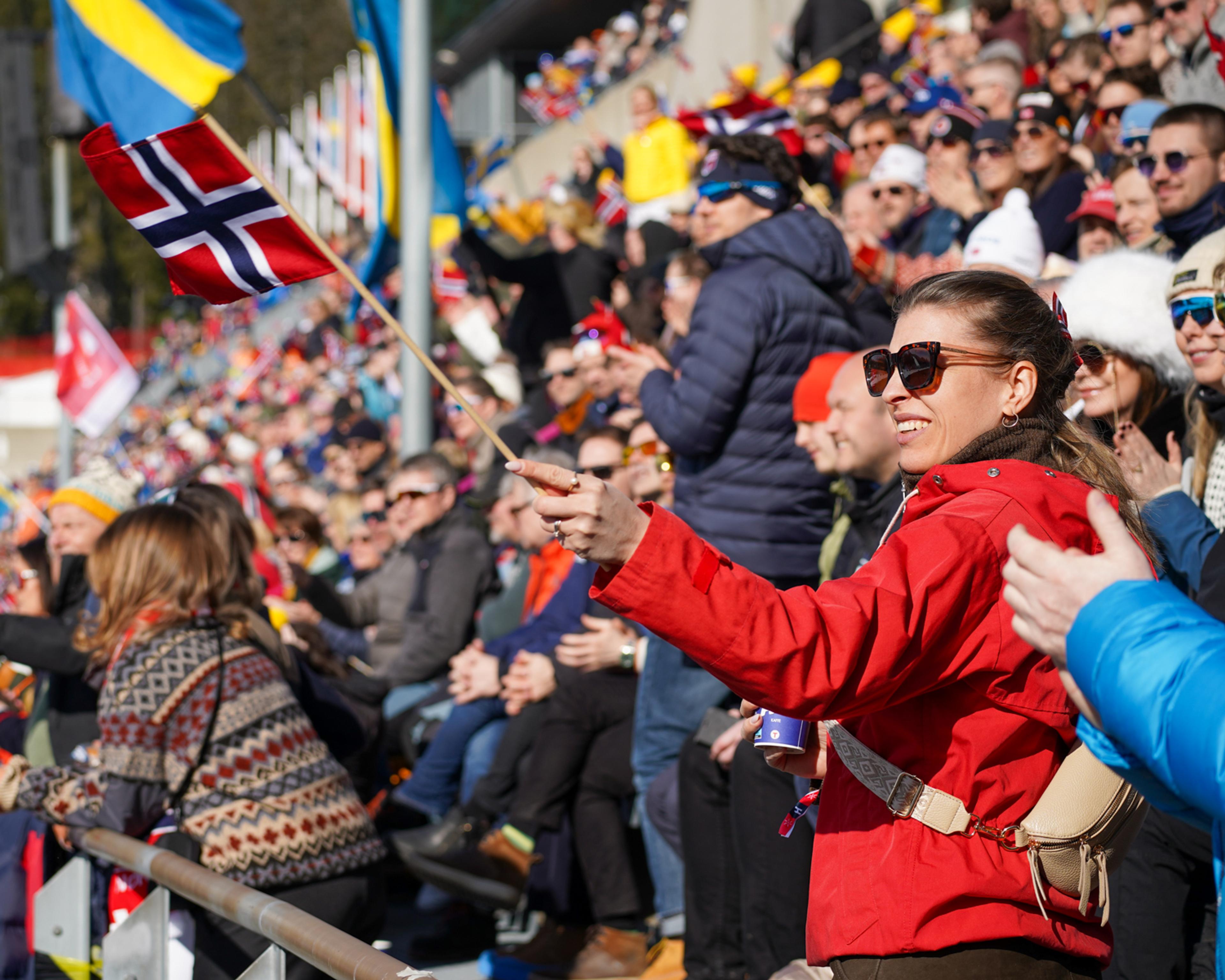 Laurdag starta med sol, blå himmel og fulle tribunar for 20 kilometer klassisk for kvinner og menn – før kombinert 5 kilometer for kvinner og kombinert 10 kilometer for menn.