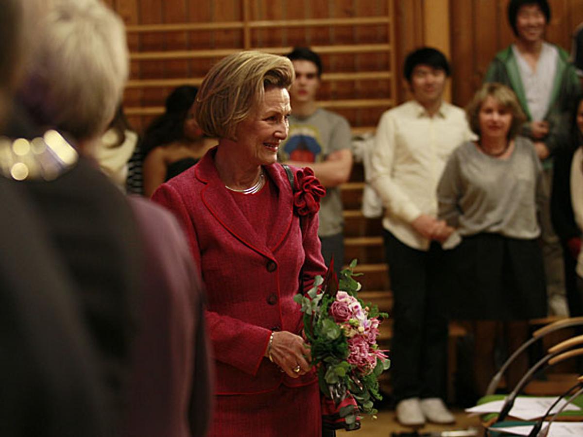 Dronningen fikk også et innblikk i skolehverdagen og ble vist rundt på Malakoff av rektor Bente Lis Larsen og elevrådsleder Ina Marie Guttulsrød. Omvisningen inkluderte blant annet et besøk til biblioteket og innføringsklassen Oasen, samtale med minoritetsspråklige, undervisning i ambulansefag, teknikk og industriell produksjon og besøk til basen med tilrettelagt opplæring.