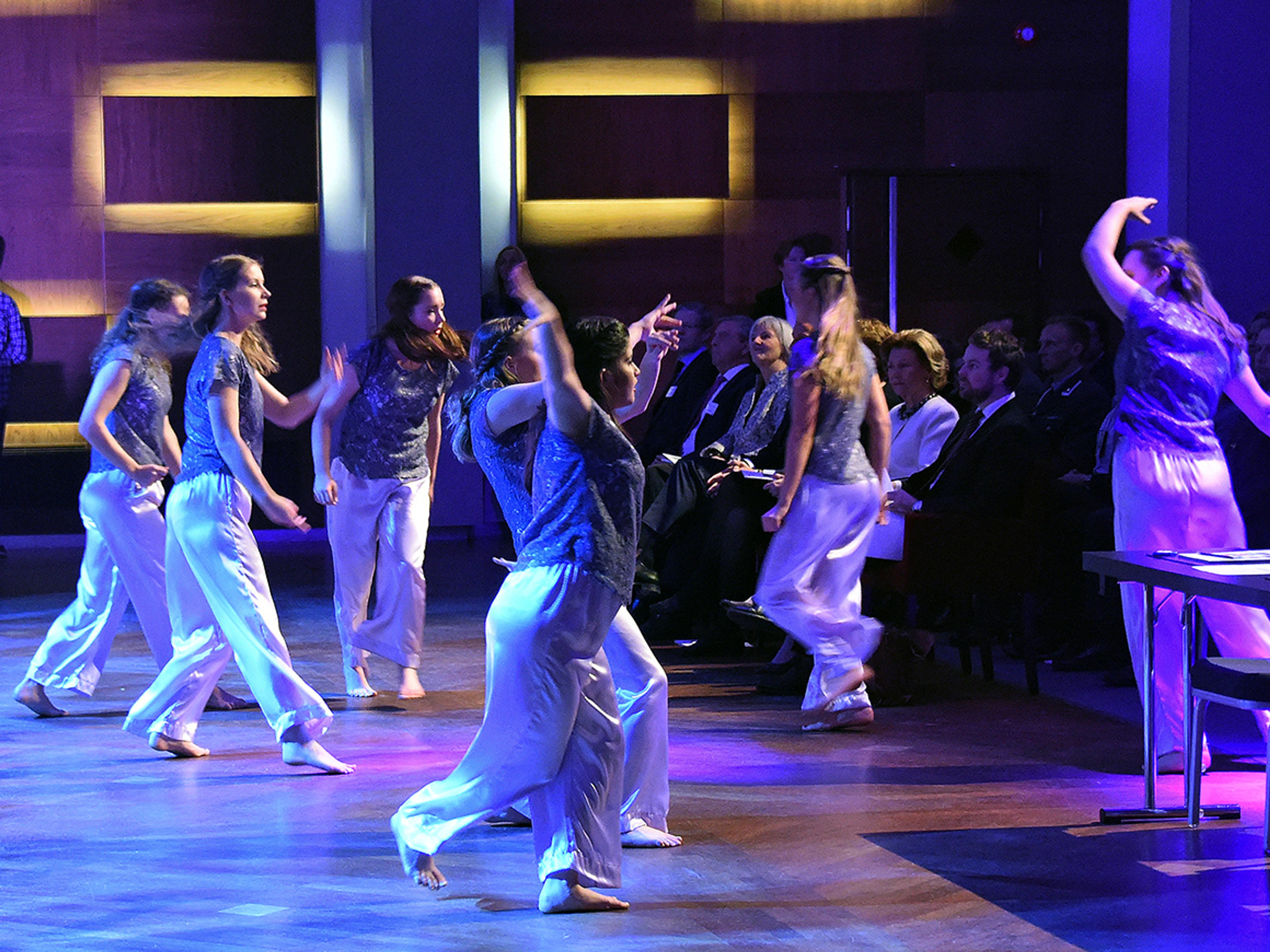 Dronning Sonja holdt ingen tale i dag. Hennes innlegg hadde i stedet form av et intervju. På spørsmål fra Kronprinsen fortalte Dronningen om hvordan prisen ble til, sine møter med skolene og om hvorfor inkludering og likeverd er kvalitetene prisens jury vurderer kandidatene etter.