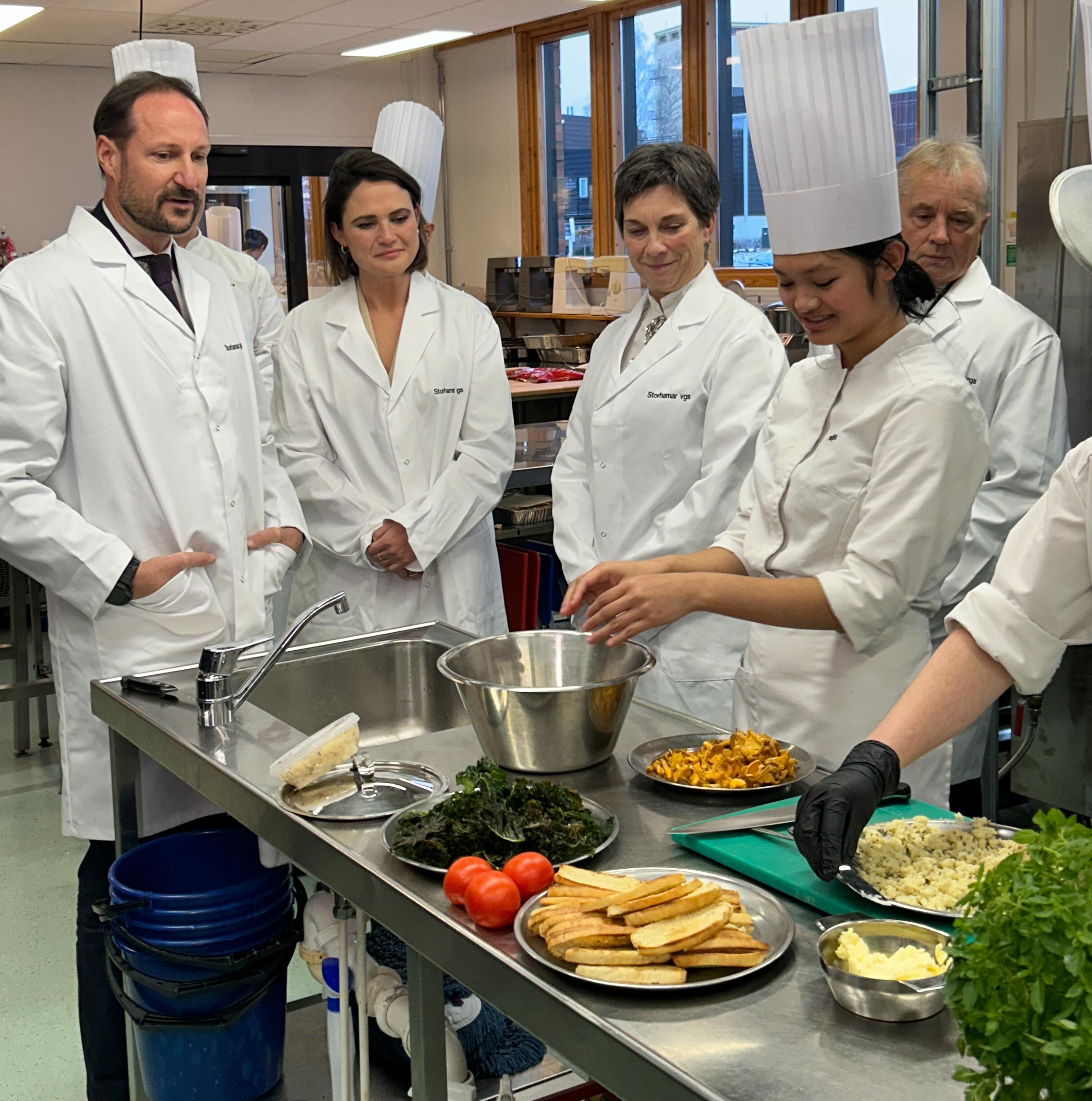 Kronprinsen ble ønsket velkommen og vist rundt av elevrådsleder Ingrid Dyrkorn og rektor Hjørdis Bjølseth. Det var elevene selv som som tok initiativ til årets søknad fra skolen, og elevrådsstyret brukte søknadsprosessen til å styrke arbeidet med likeverd og inkludering.