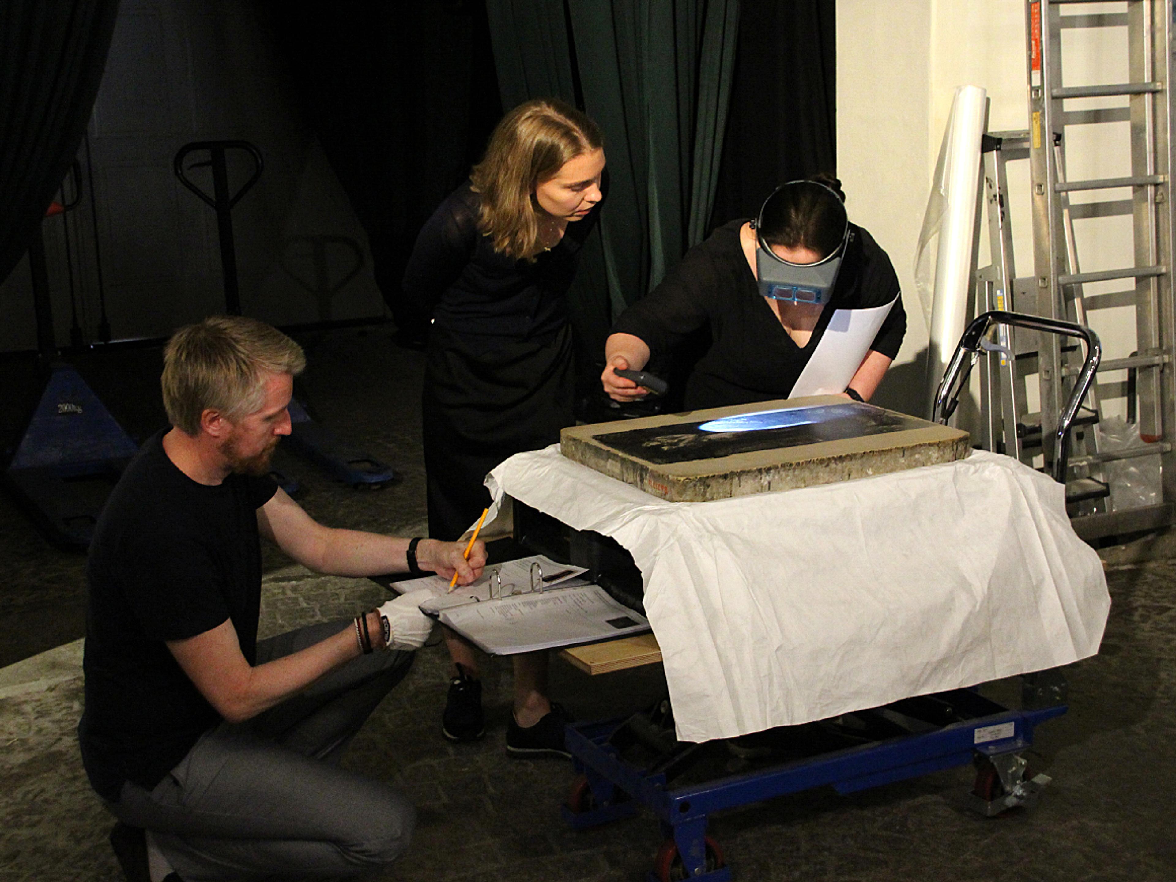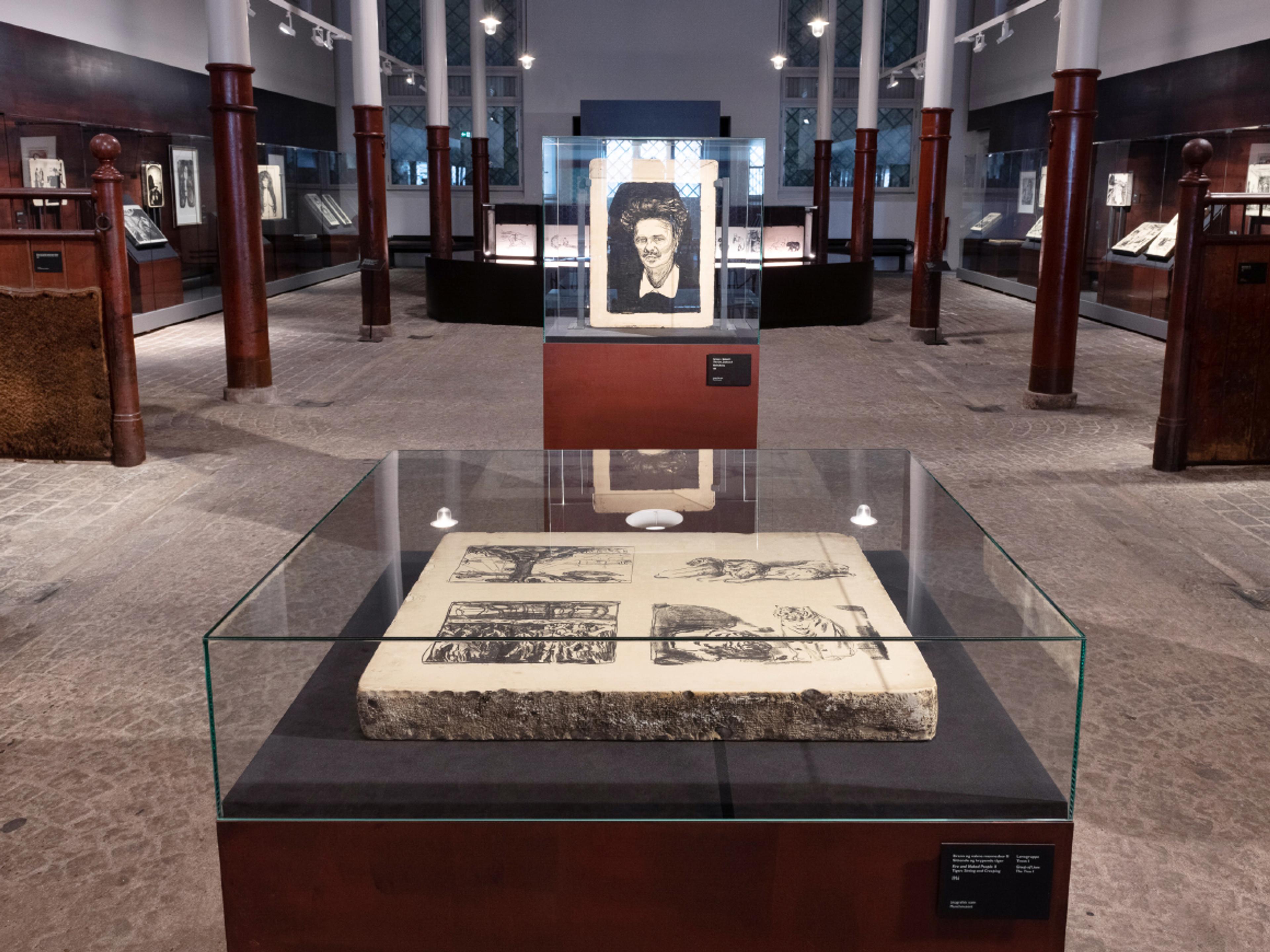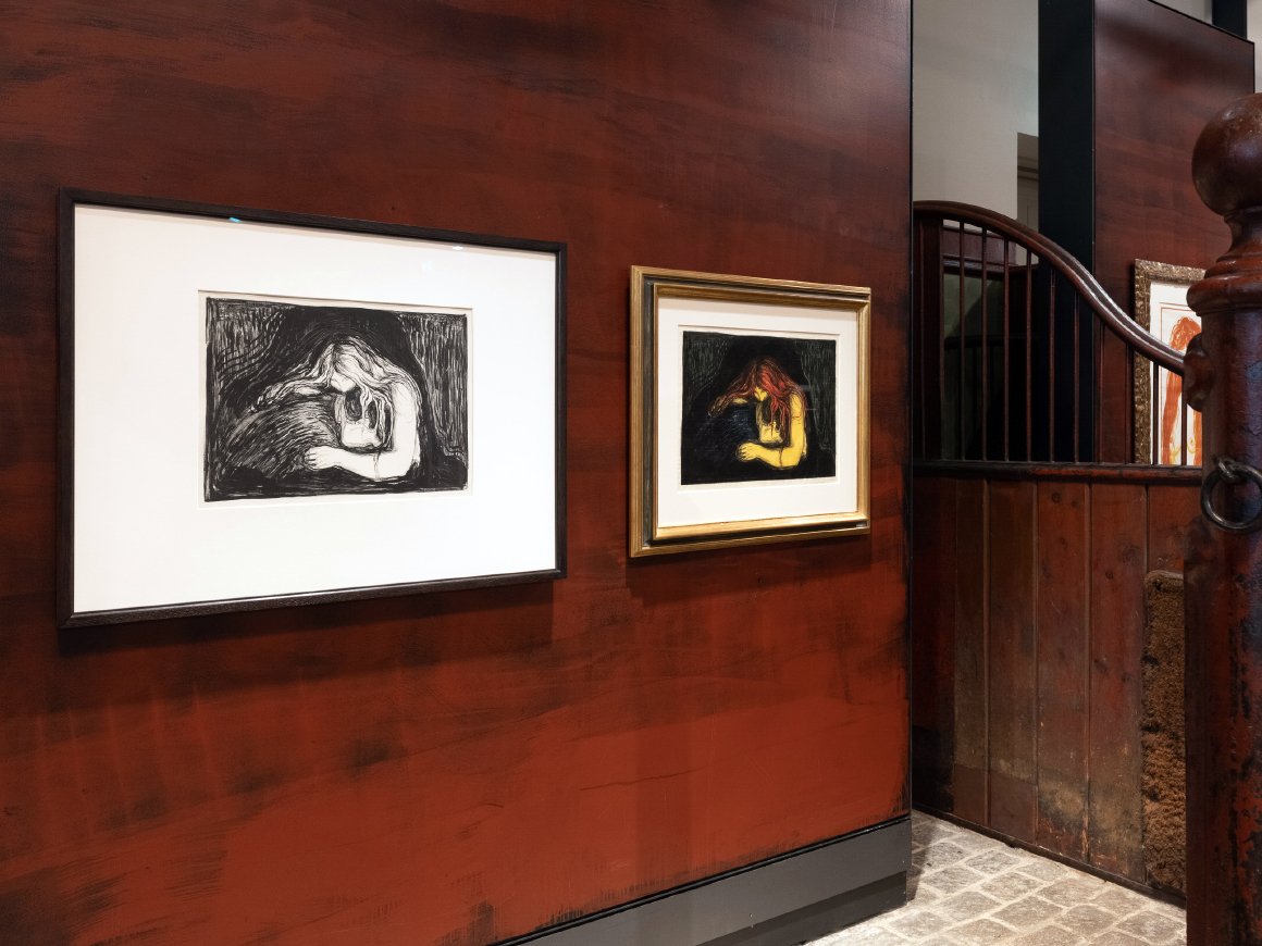 Nesten alle verkene i utstillingen er litografier, trykket ved hjelp av litografiske steiner. Nå er 38 av disse steinene å finne i KunstStallen, på utlån fra Munchmuseet. De har aldri vært vist sammen med de ferdige verkene på denne måten tidligere.