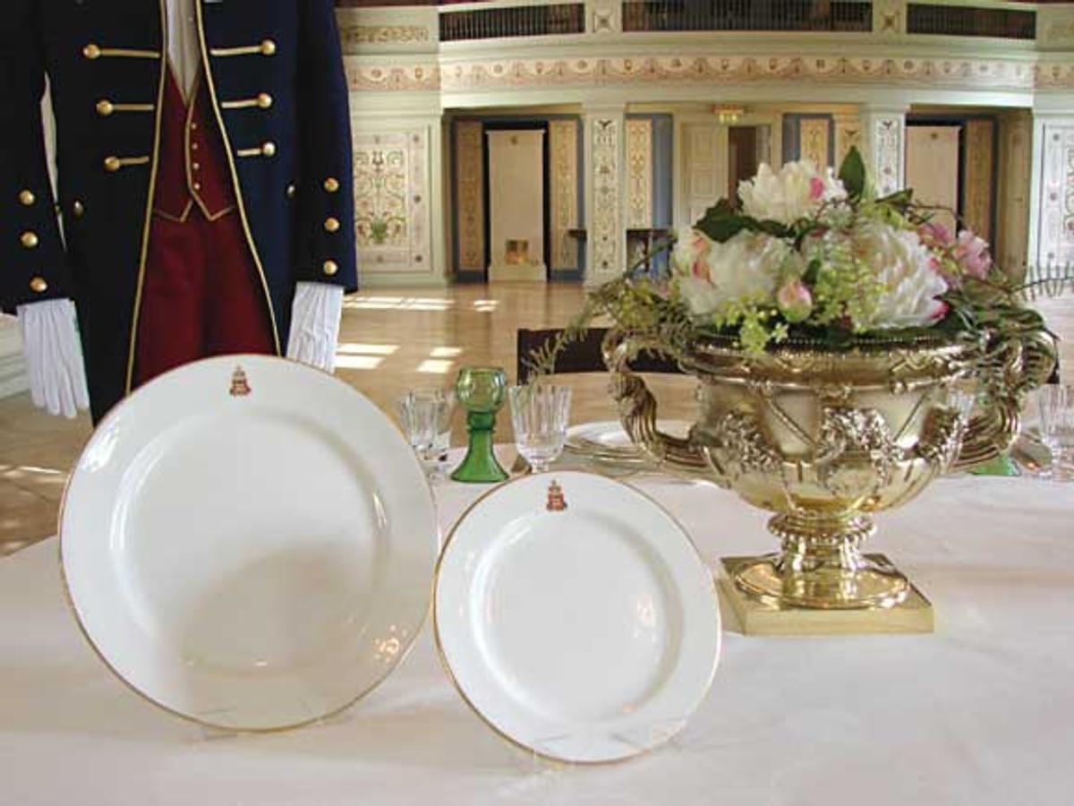 Dronning Maud fekk eit gedigent servise i kroningsgåve frå det engelske folket i 1906. Det bestod mellom anna av 24 forgylte dekkjetallerkenar, 140 sølvtallerkenar, forgylt dessertbestikk til 120 personar, fire forgylte kopiar i sølv av Warwick-urna og to forgylte kandelabrar. Serviset har seinare vorte komplettert, slik at det kan brukast ved store høve.