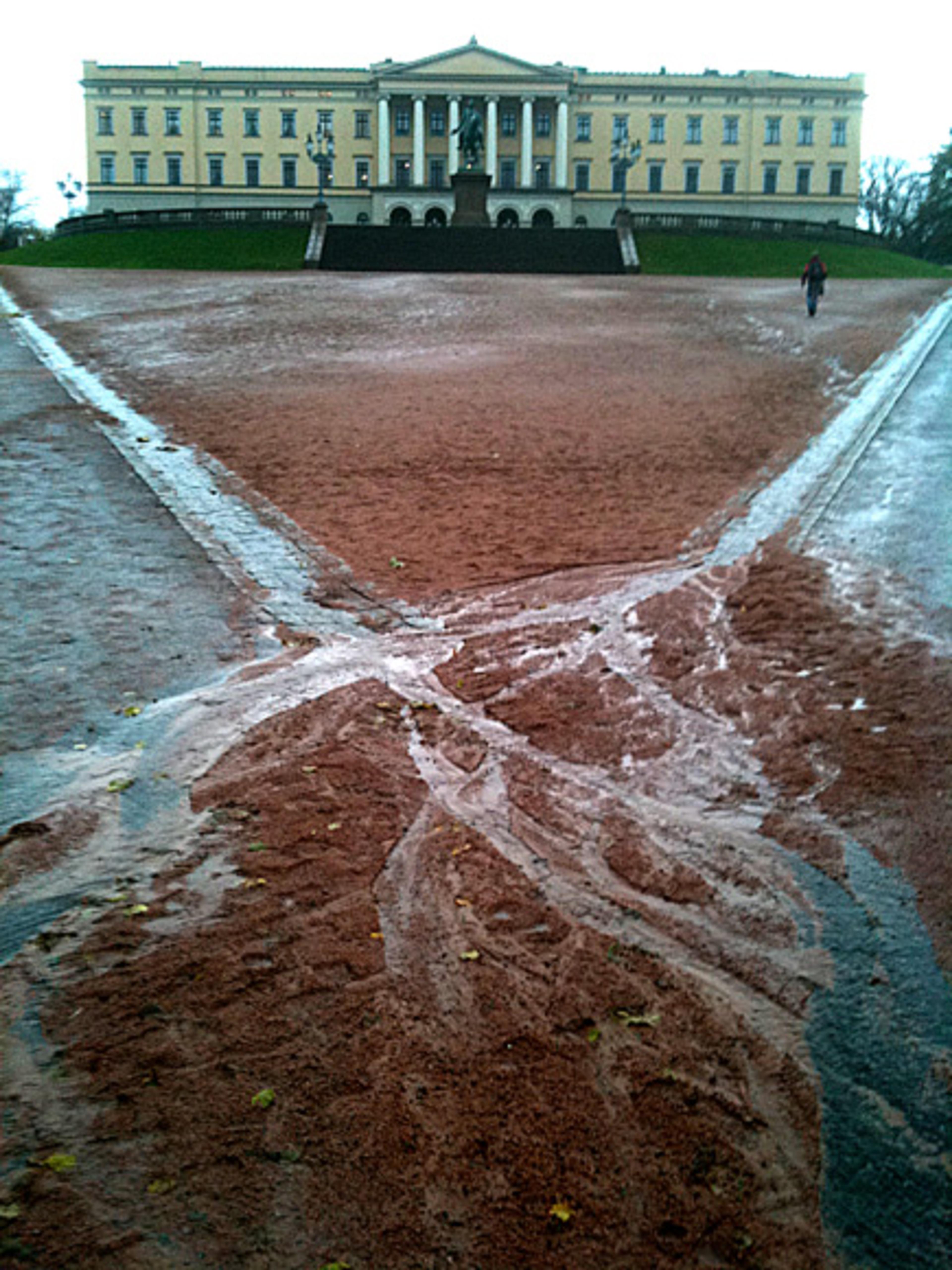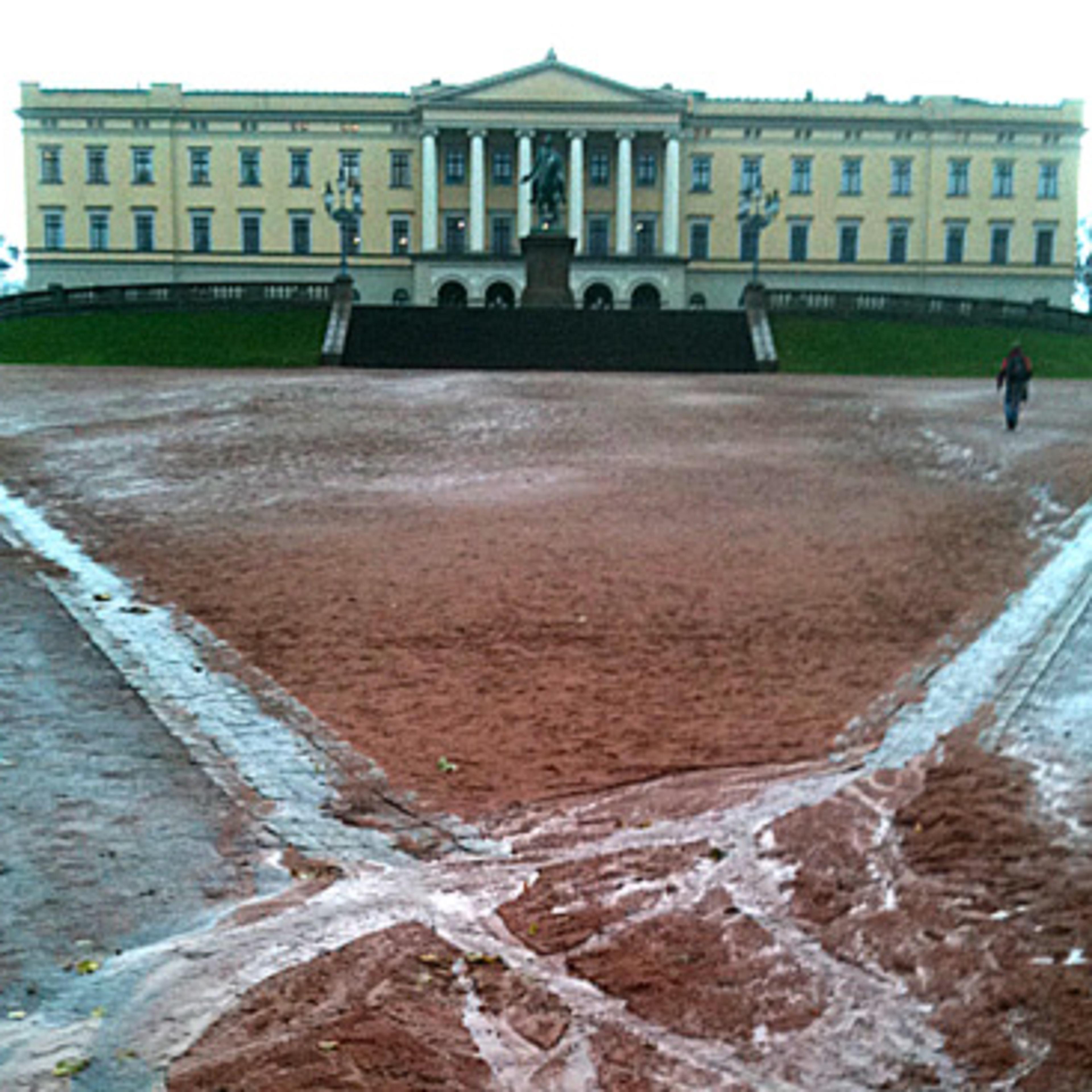 Det er Slottsgartneriet som har oppgaven med å holde Slottsplassen i orden, og grusen har skapt mye arbeid. Mellom 10 og 12 kubikkmeter regner bort hver måned i sommerhalvåret og må bringes tilbake. Med alt regnet sist sommer, måtte gartnerne hente grusen opp hver tredje dag i gjennomsnitt. Hele 150 tonn grus må tilføres plassen på nytt hvert år.