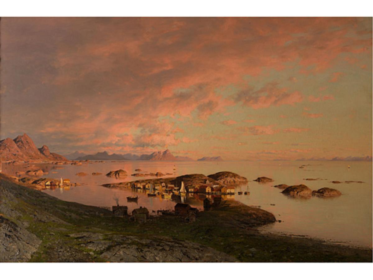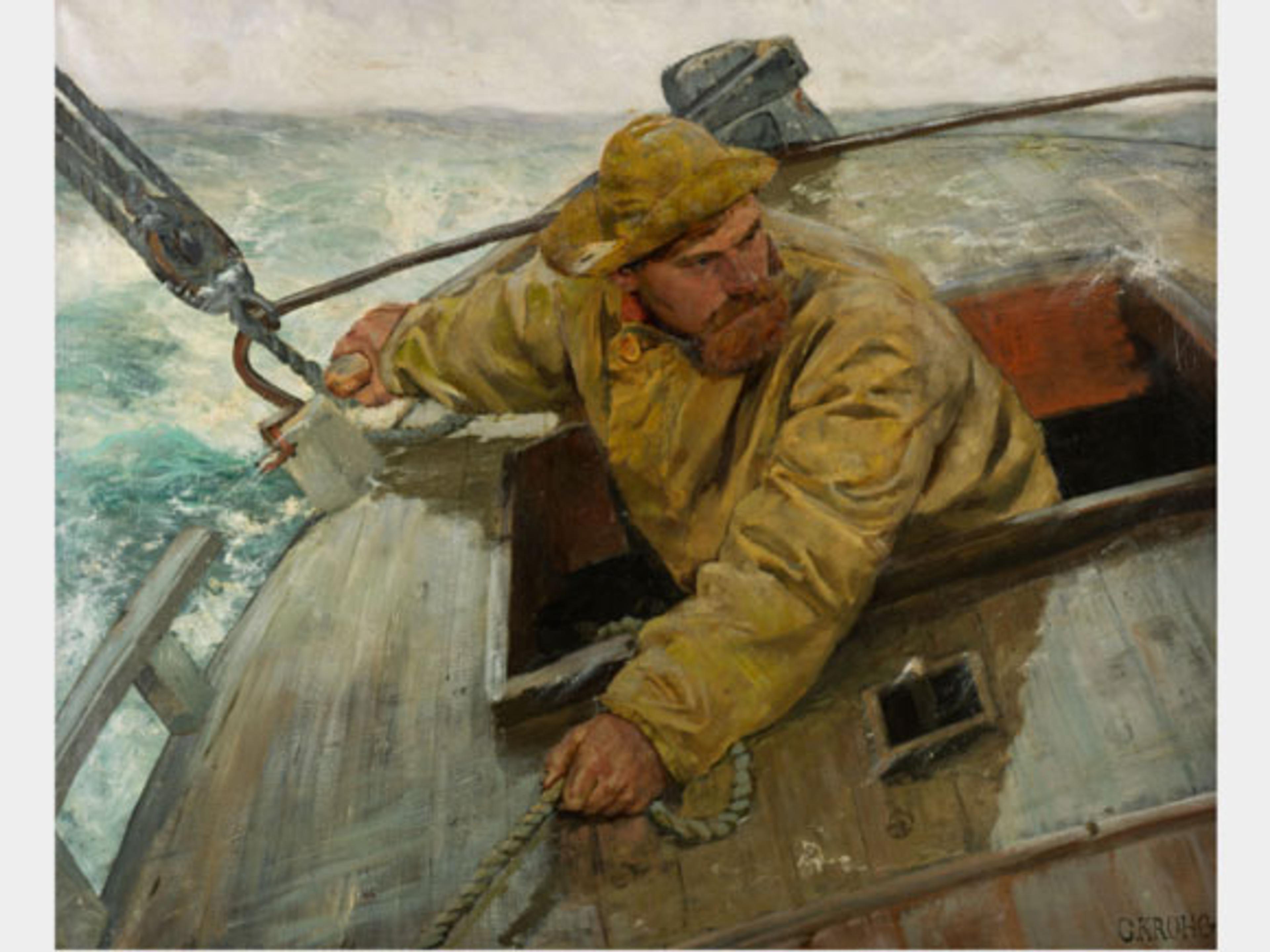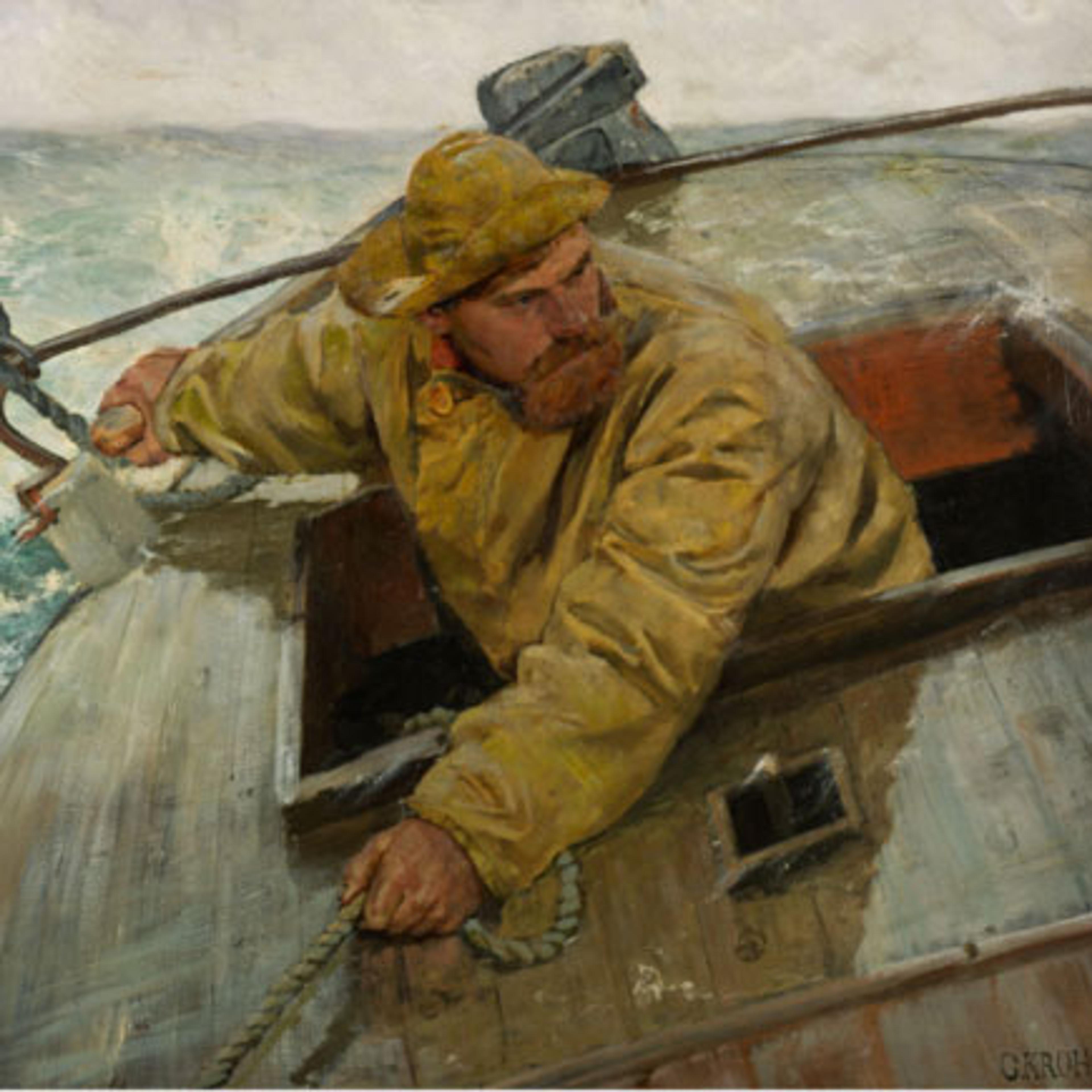 I alt er det sytten måleri som blir viste fram – av dei heng seksten til dagleg på Det kongelege slottet. Det gjeld blant anna Christian Krohgs dramatiske Hardt le. Det har sin vanlege plass på Hans Majestet Kongens kontor, men er no sentralt på utstillinga i Tromsø.