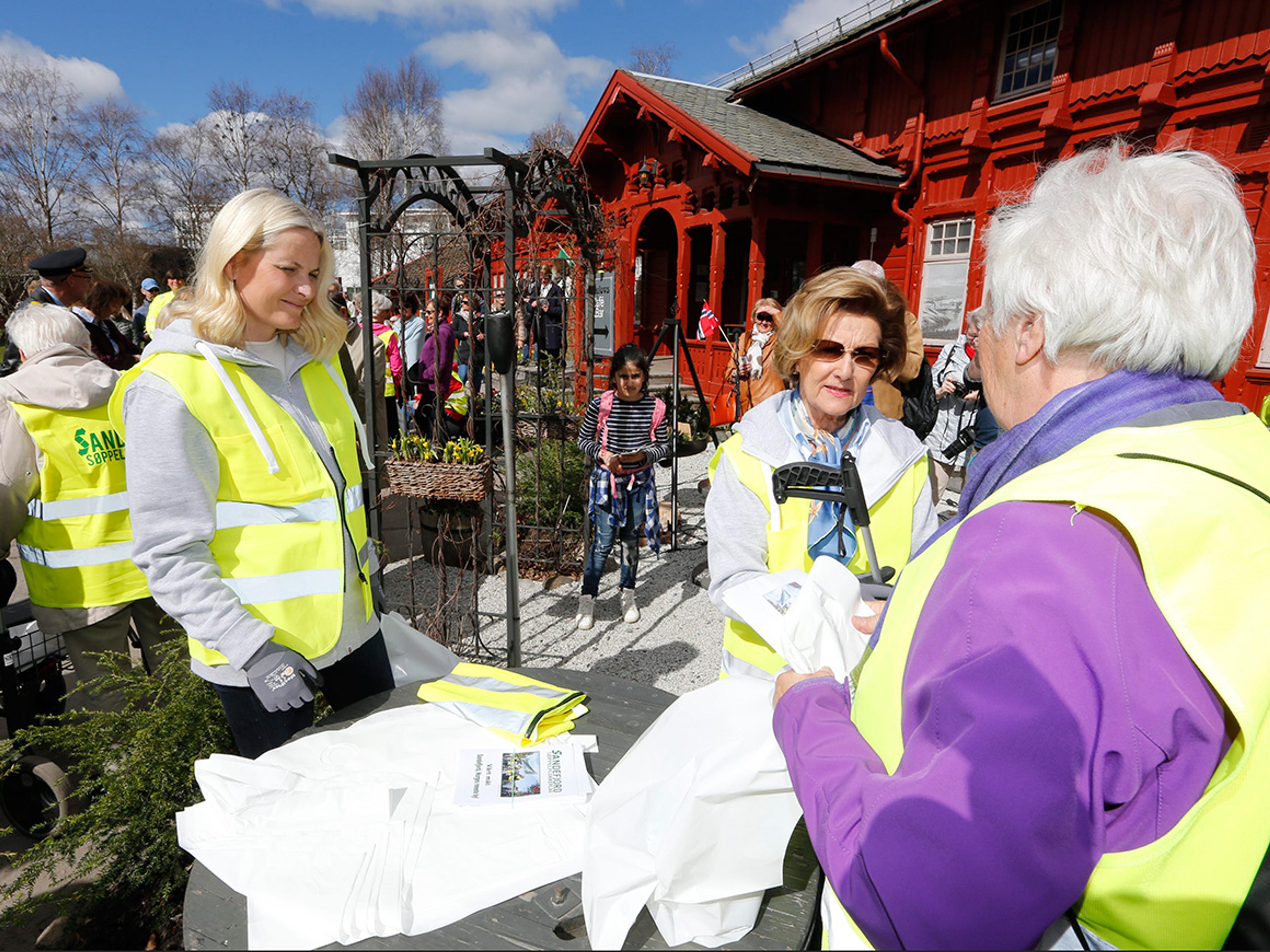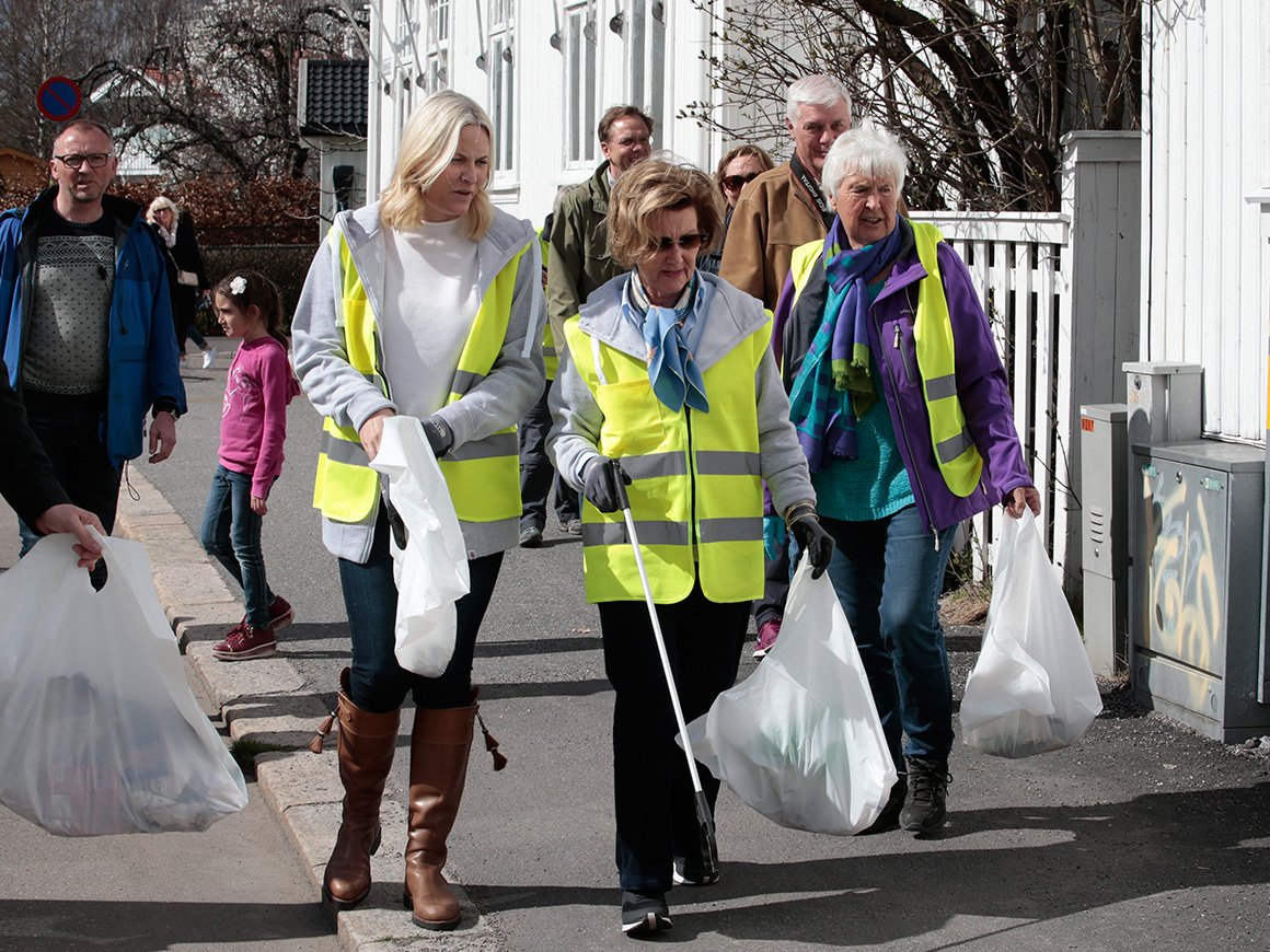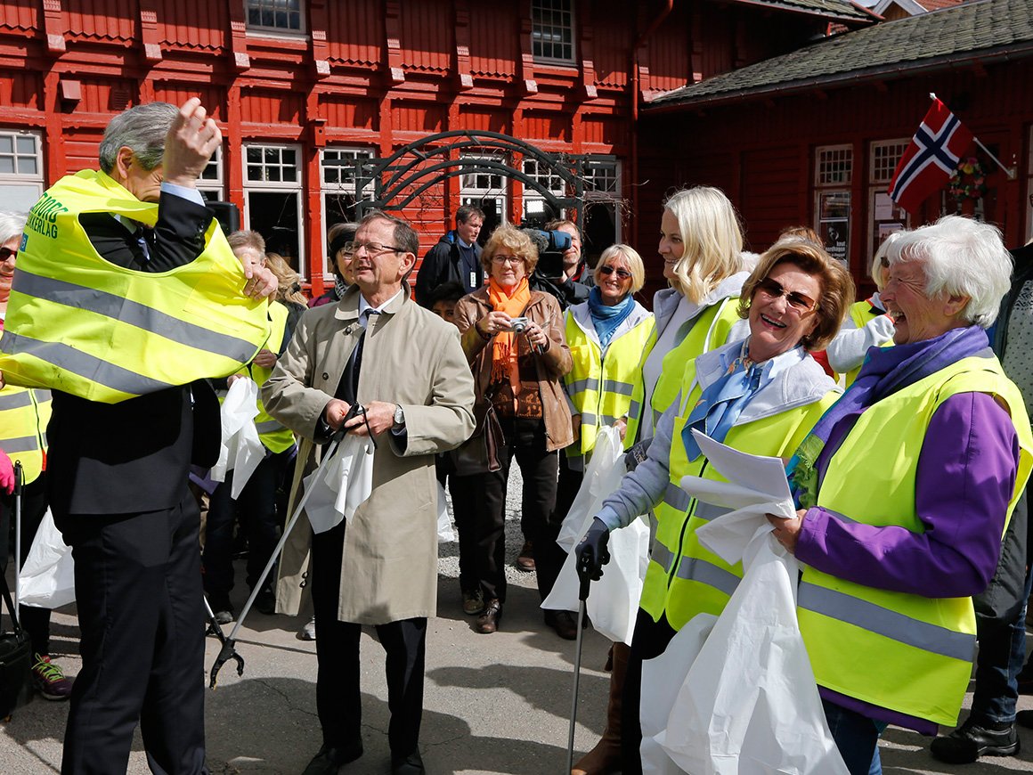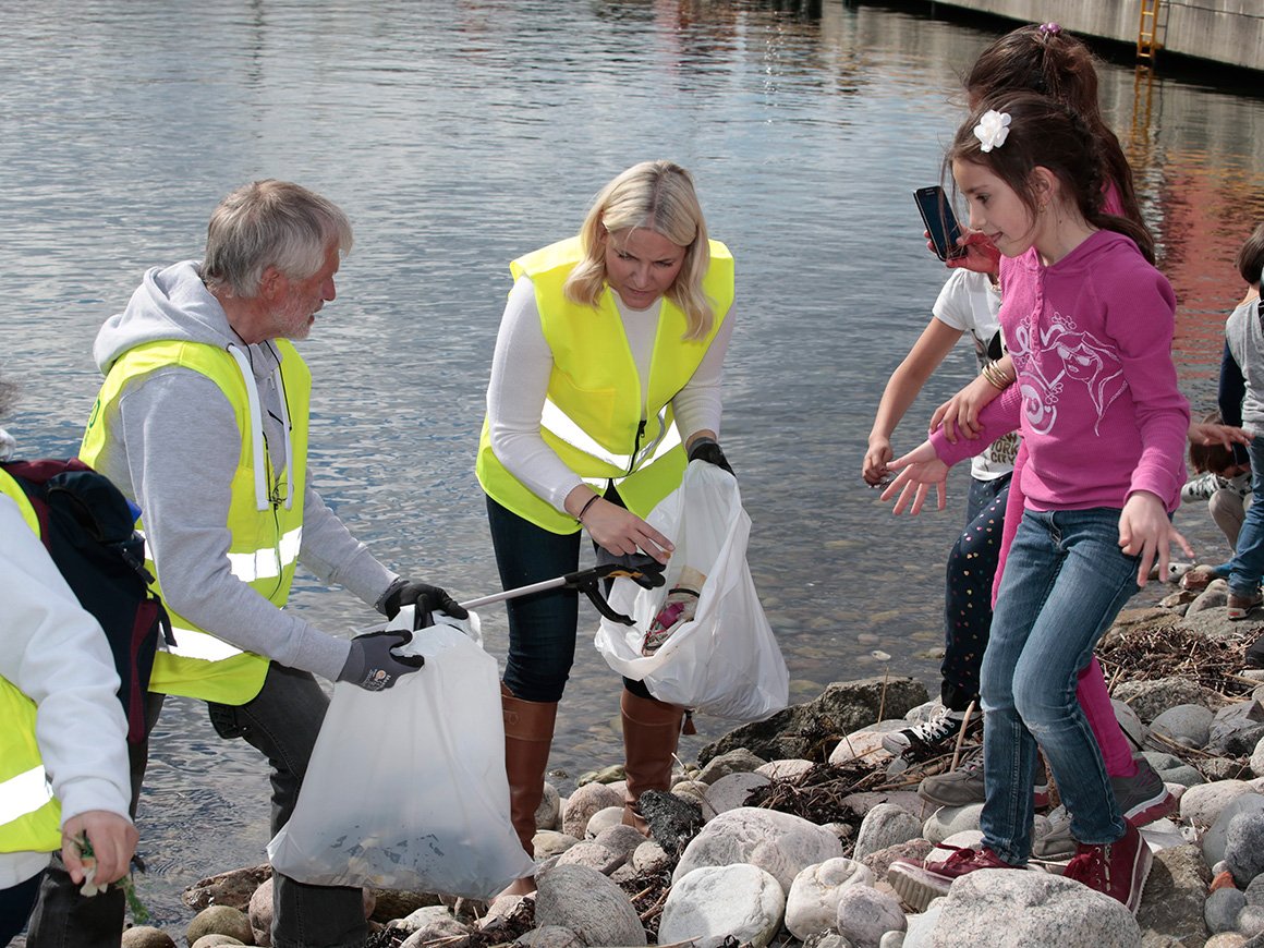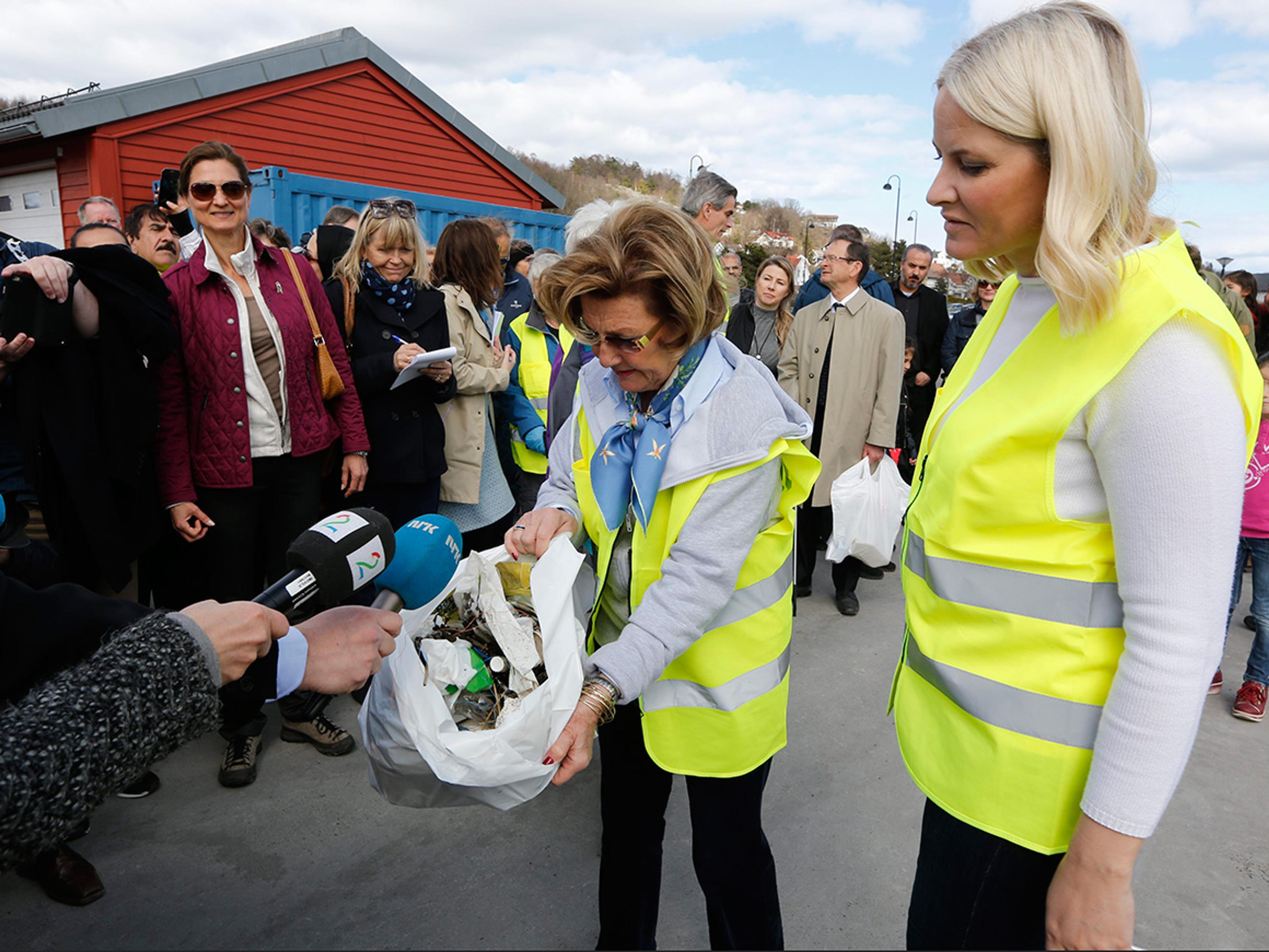 Sist oktober inviterte Kongeparet Rannveig Horntvedt fra Sandefjord på mottakelse for eldre ildsjeler på Slottet. Der fikk de høre om Sandefjord søppelplukkerlag, som ble stiftet av Horntvedt i 2014. Så langt har de fjernet over 28 tonn søppel. Dronningen ble så imponert over initiativet at hun ønsket å bidra - og hun fikk følge av Kronprinsessen.