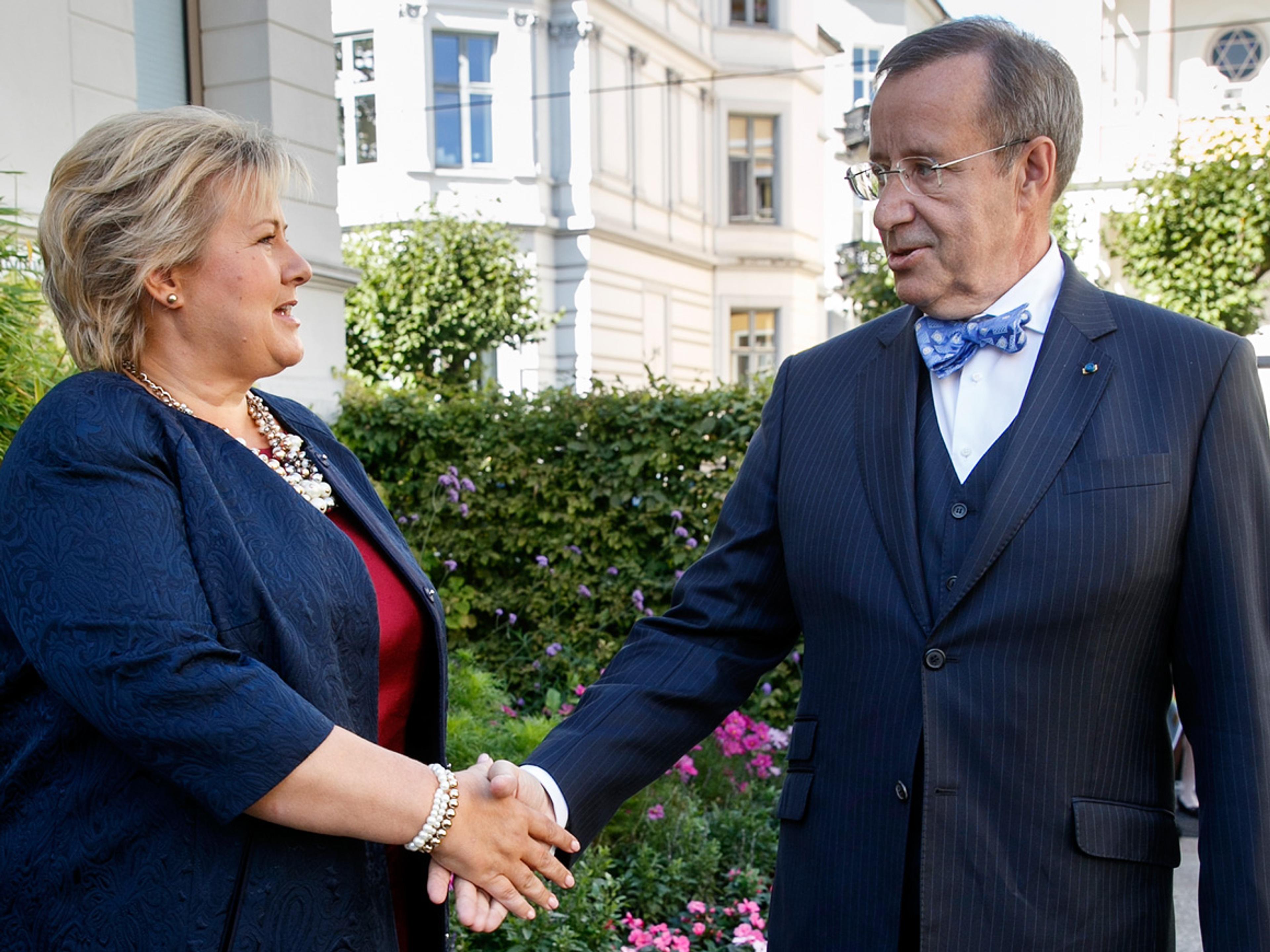 Klokka 10.00 vart Estlands president ønskt offisielt velkommen på Slottsplassen. H.E. President Toomas Hendrik Ilves er på statsbesøk i Noreg etter invitasjon frå H.M. Kong Harald.