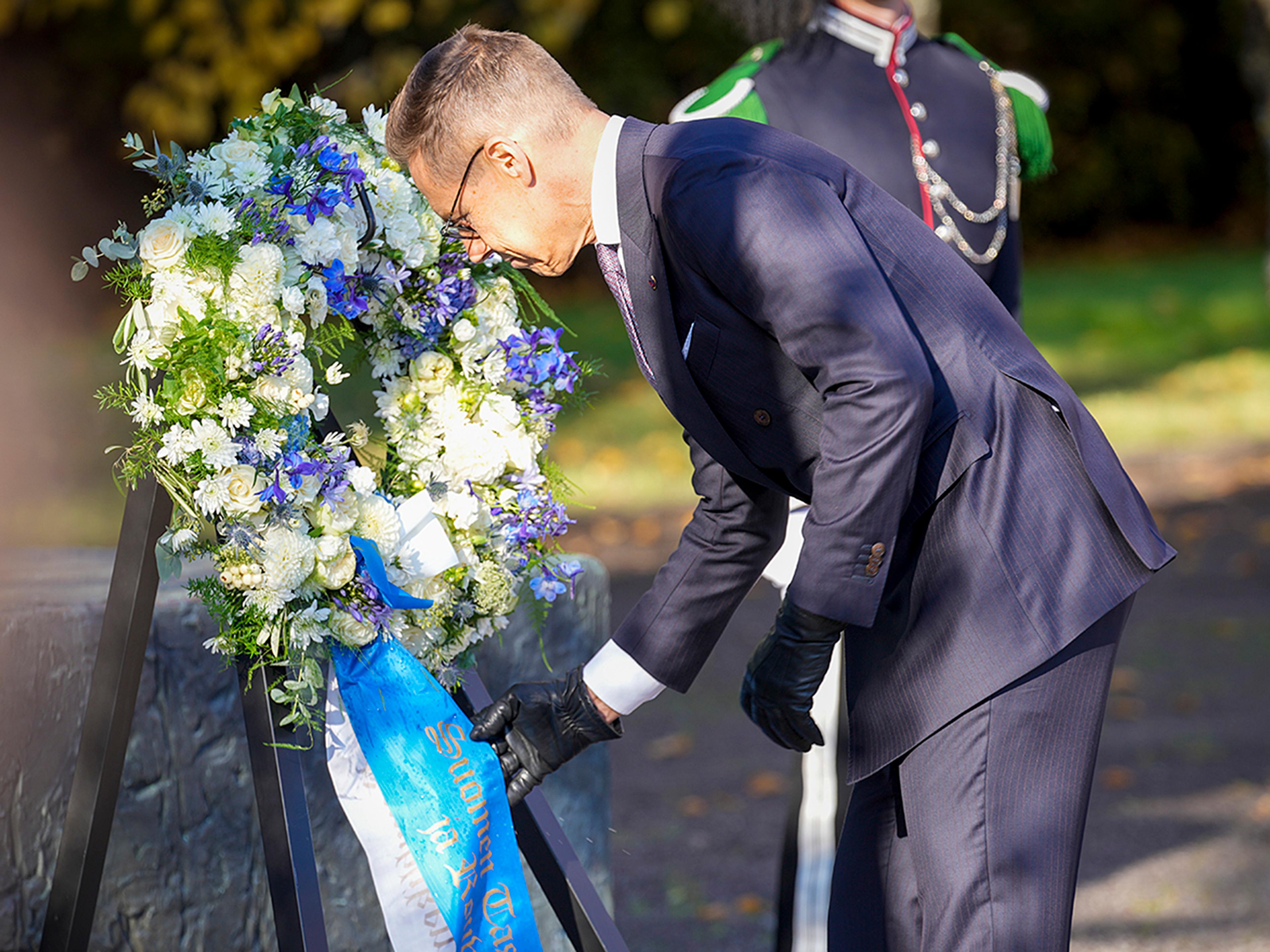 Etter velkomstseremonien ledsaget Kronprinsparet President Stubb og førstedamen til Akershus festning, der Presidenten la ned krans ved det norske nasjonalmonumentet. Det er tradisjon at besøkende statsoverhoder viser de norske falne fra andre verdenskrig denne æren. Den høytidelige seremonien ble innledet med landenes nasjonalsanger og omfattet også en inspeksjon av æresgarden.