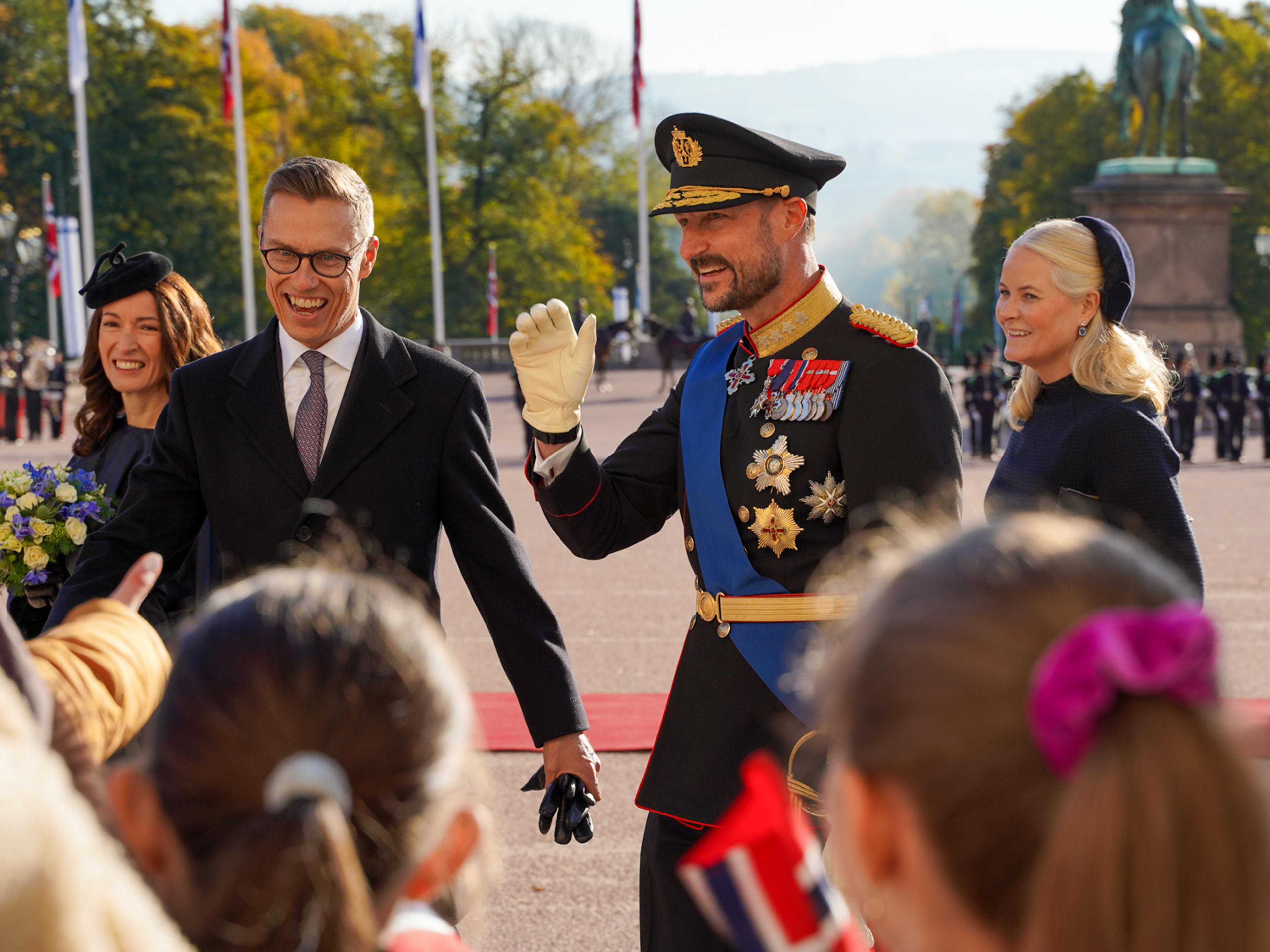 Deres Majesteter Kong Harald og Dronning Sonja kunne ønske Finlands presidentpar, Hans Eksellense herr Alexander Stubb og fru Suzanne Innes-Stubb, velkommen til Norge i formiddag.