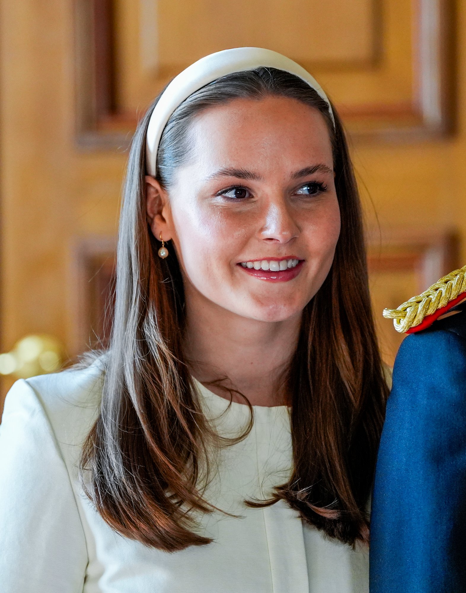 Inne på Slottet fortsatte velkomstseremonien med offisiell fotografering i Fugleværelset og gaveutveksling. Der var også Prinsesse Astrid, fru Ferner til stede.