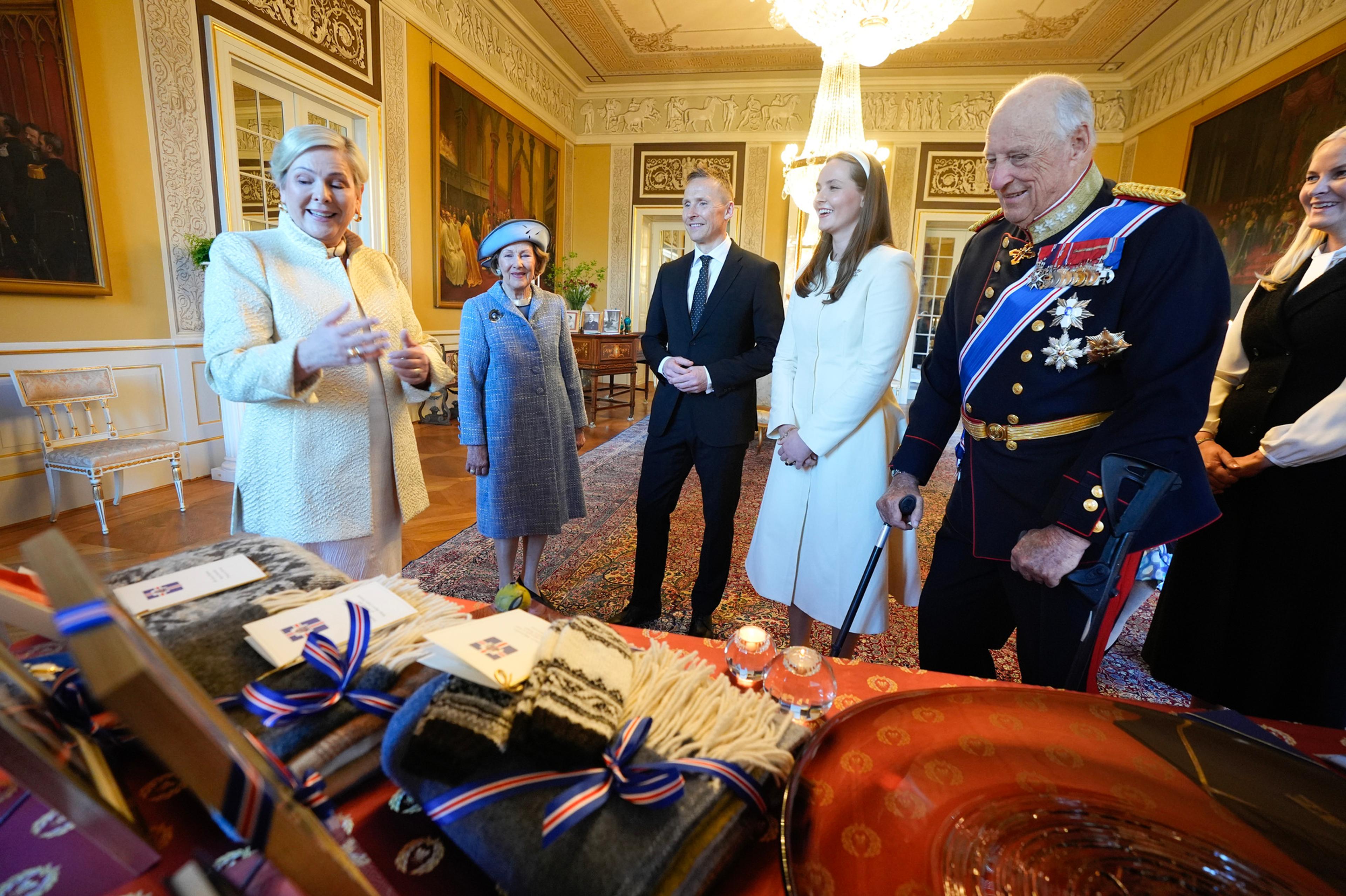 I kveld er det gallamiddag på Slottet til ære for besøket. Kongeparet, Kronprinsparet, Prinsesse Ingrid Alexandra og Prinsesse Astrid, fru Ferner deltar sammen med det islandske presidentparet.