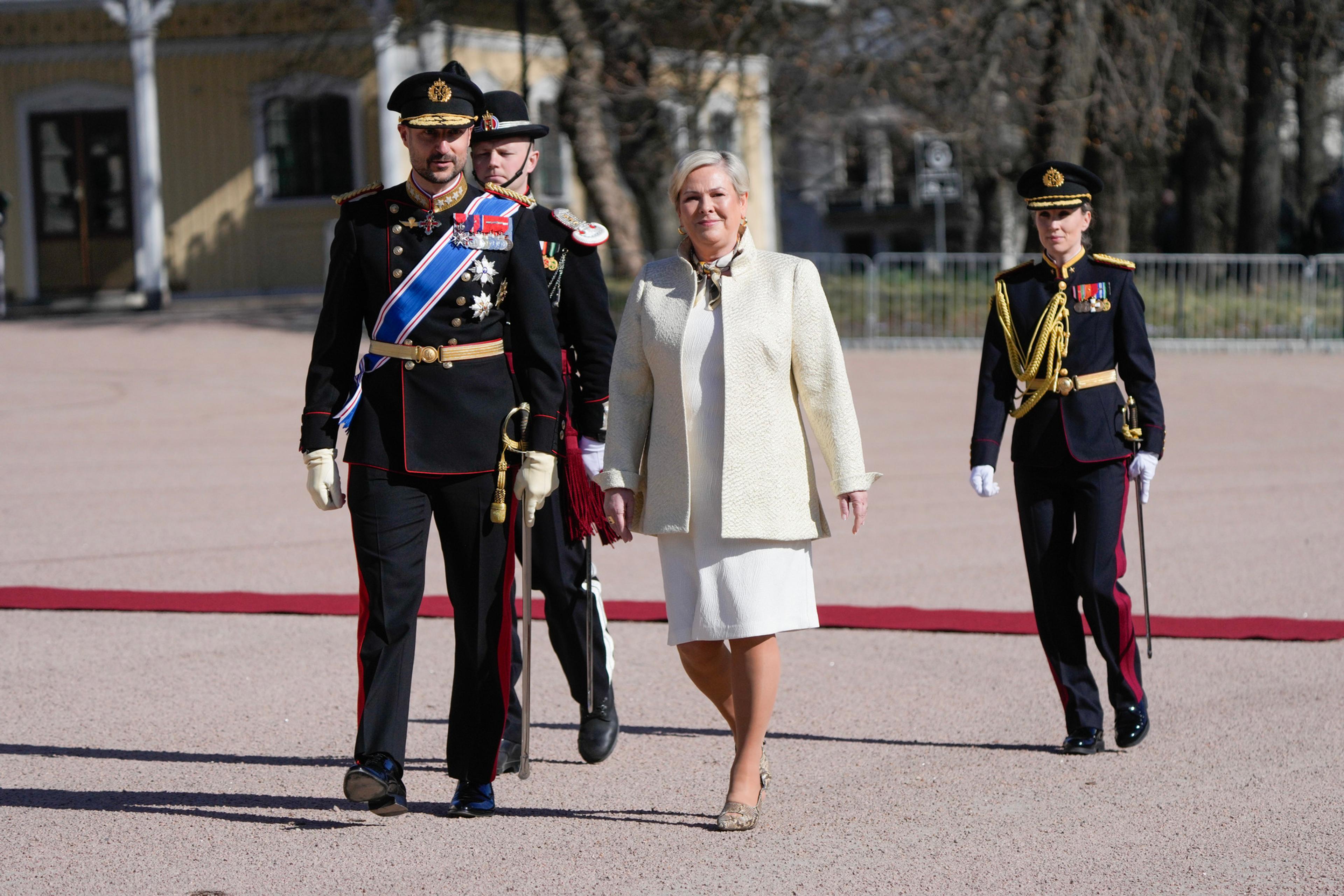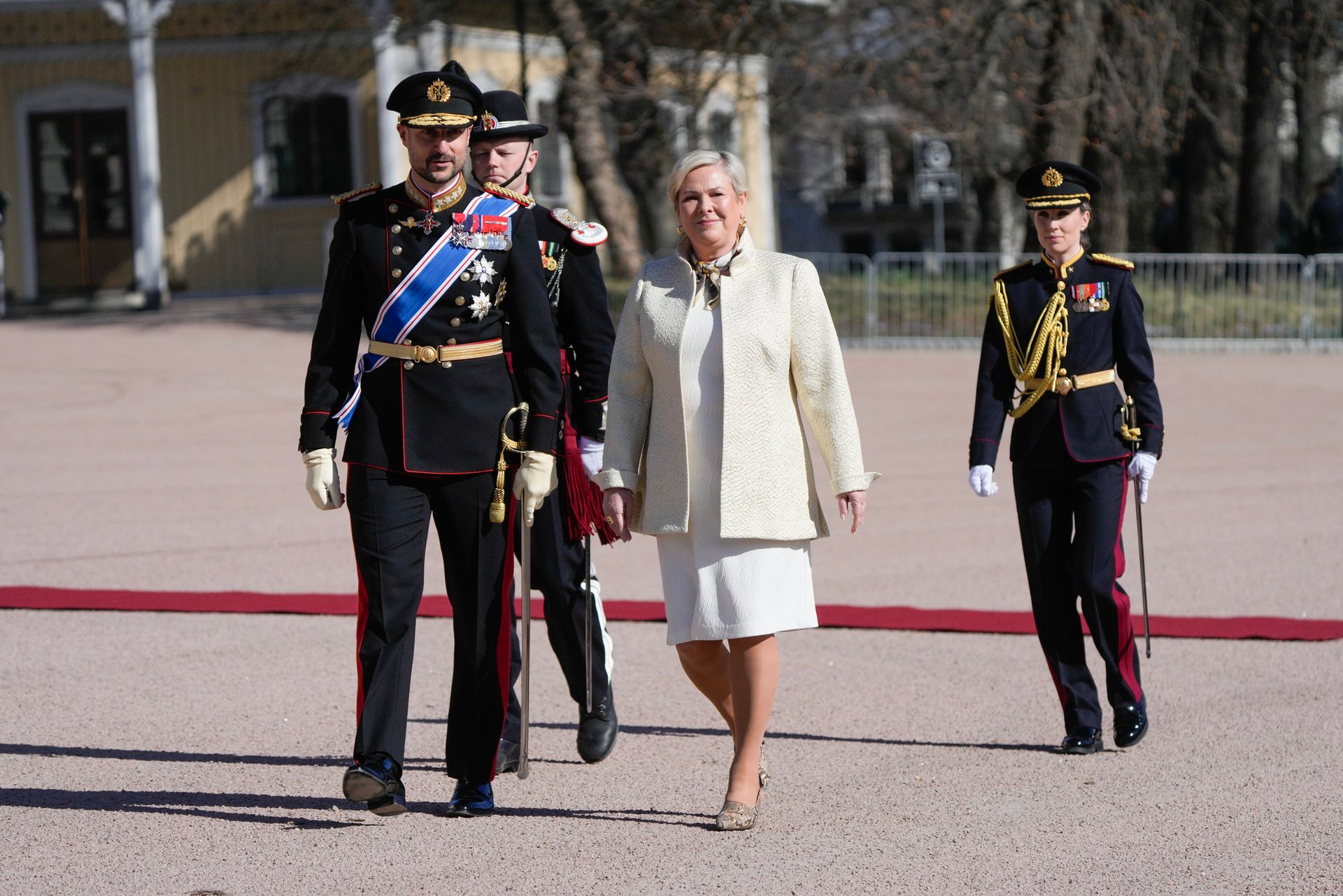 Den høytidelige velkomstseremonien startet på Slottsplassen der landenes nasjonalsanger ble avspilt og President Tomasdottir, ledsaget av Hans Kongelige Høyhet Kronprins Haakon, inspiserte et æreskompani fra Kongens garde.