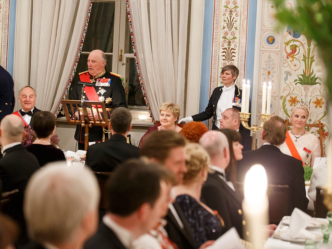 I kveld held Kong Harald og Dronning Sonja gallamiddag på Det kongelege slottet til ære for statsbesøket og President Andris Bērziņš. Kronprins Haakon, Kronprinsesse Mette-Marit og Prinsesse Astrid, fru Ferner, vil òg vere til stades.
