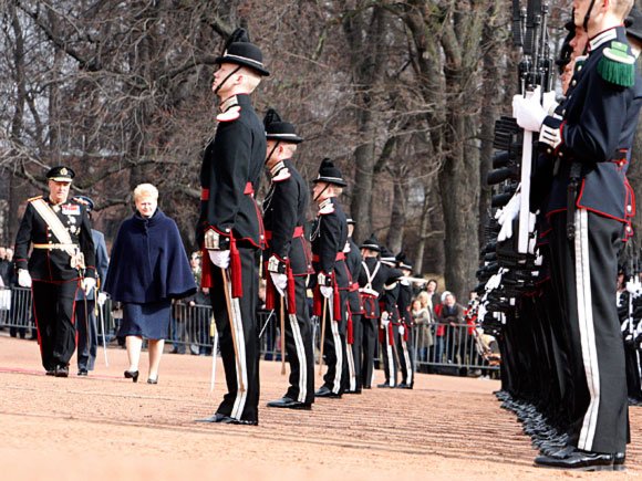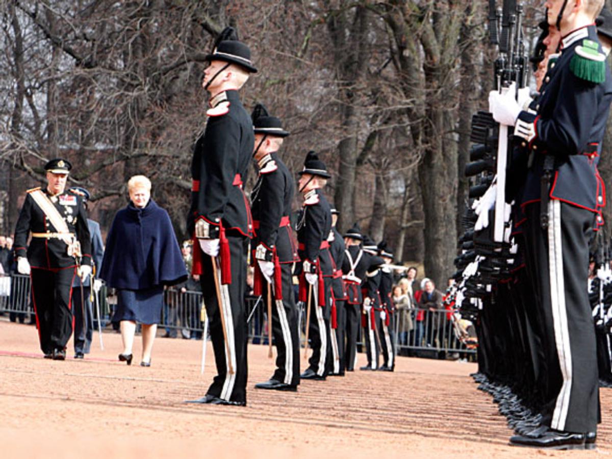 DD.MM. Kongen og Dronningen tok i mot Republikken Litauens president, H.E. Dalia Grybauskaitė, på Slottsplassen i dag. Presidenten er på et to dagers statsbesøk i Norge.