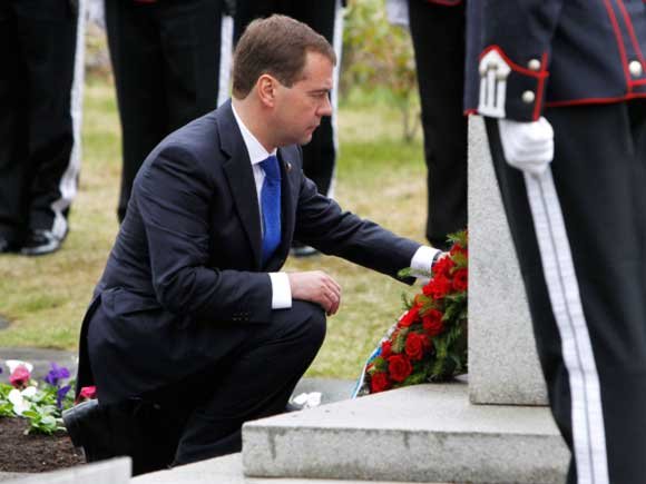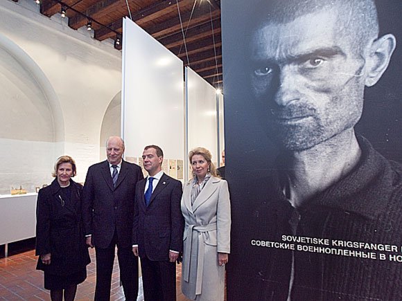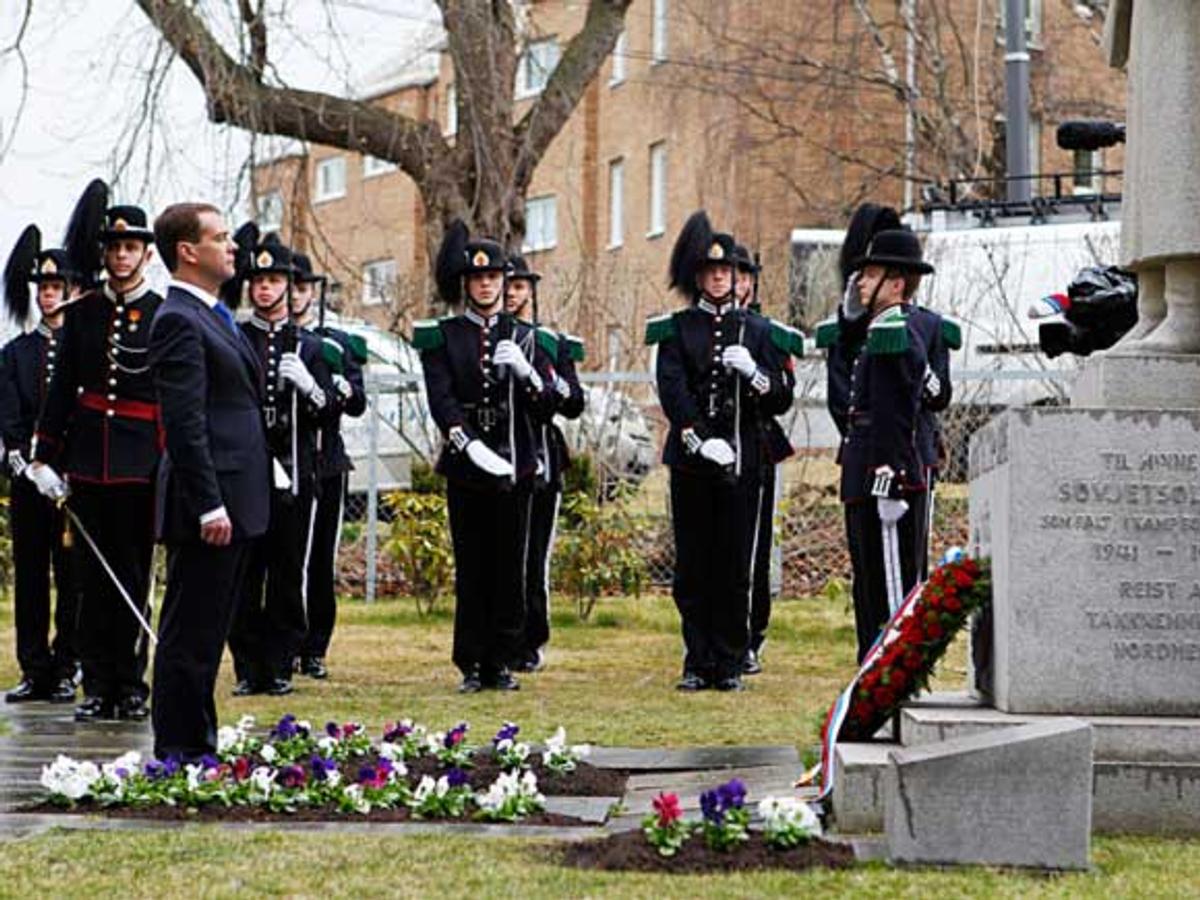 Det er tradisjon at statsoverhoder som avlegger offisielt besøk i Norge legger ned krans på nasjonalmonumentet på Akershus festning. Ledsaget av Kong Harald, la President Medvedev ned krans på monumentet til minne om nordmenn som døde under 2. verdenskrig.