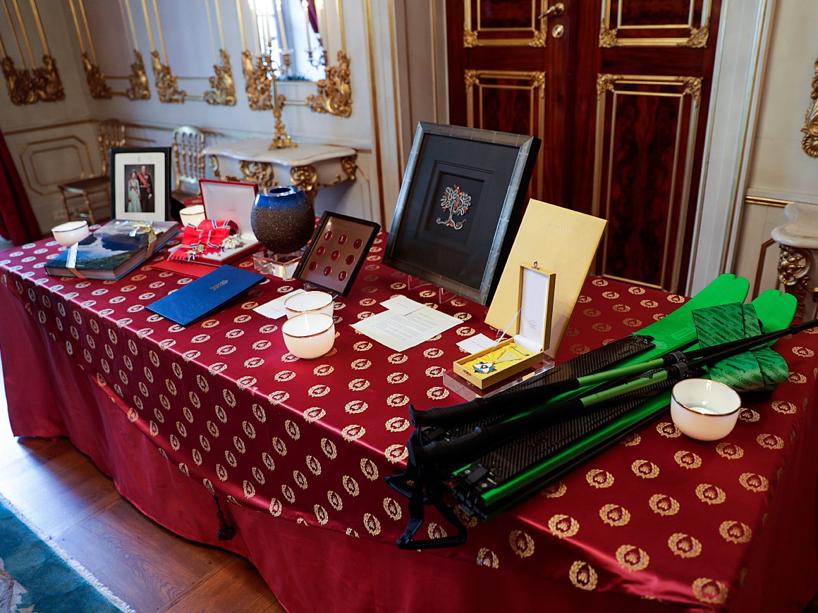 Utveksling av gaver er en del av tradisjonen under statsbesøk, og gavene var lagt fram i Den hvite salong. President Pahor hadde blant annet med et sett med helt spesielle slovenske fluer til Kong Harald. Kongen er som kjent en ivrig fluefisker.