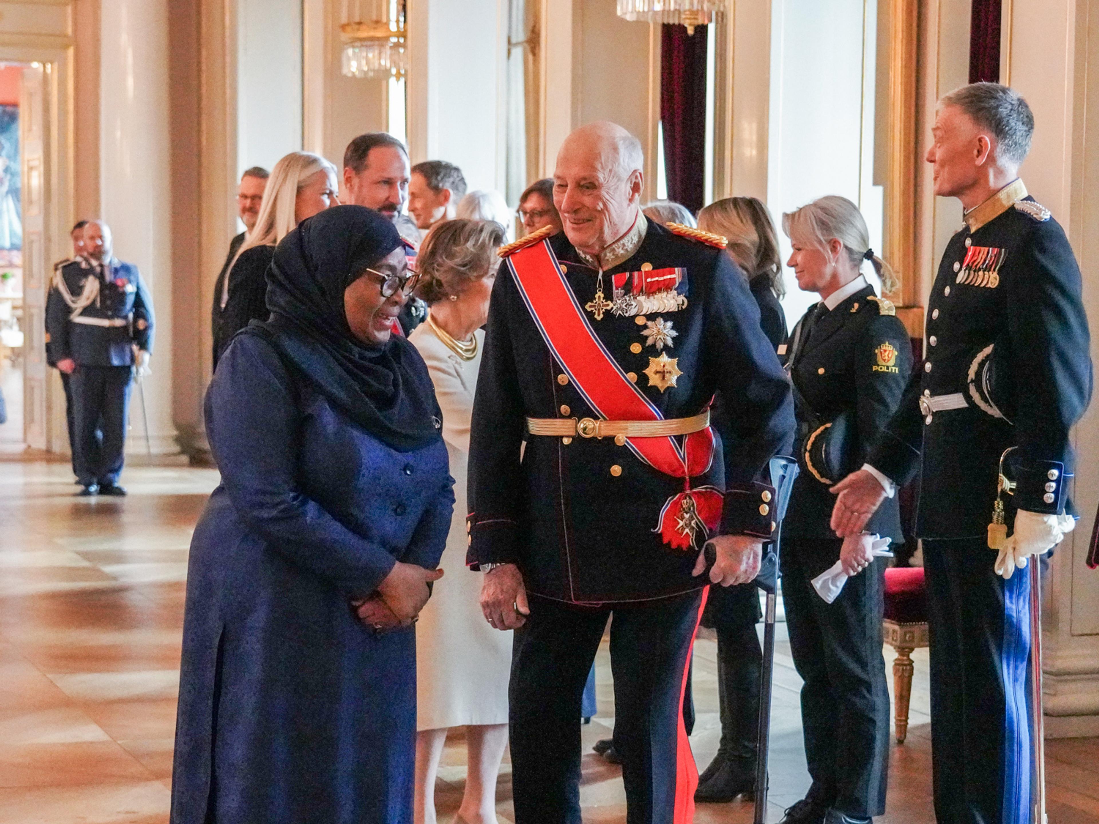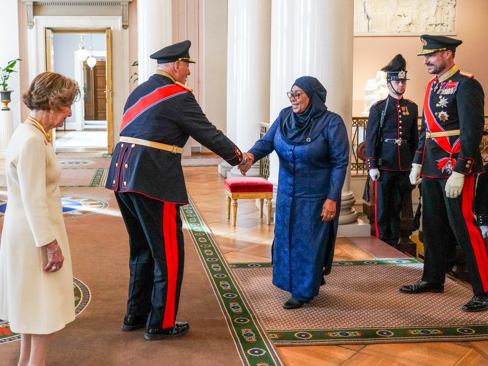 Den forente republikken Tanzanias president, Hennes Eksellense Samia Suluhu Hassan, innledet tirsdag sitt statsbesøk til Norge. Hans Majestet Kongen og Hennes Majestet Dronningen er vertskap for besøket og ønsket velkommen på Det kongelige slott.