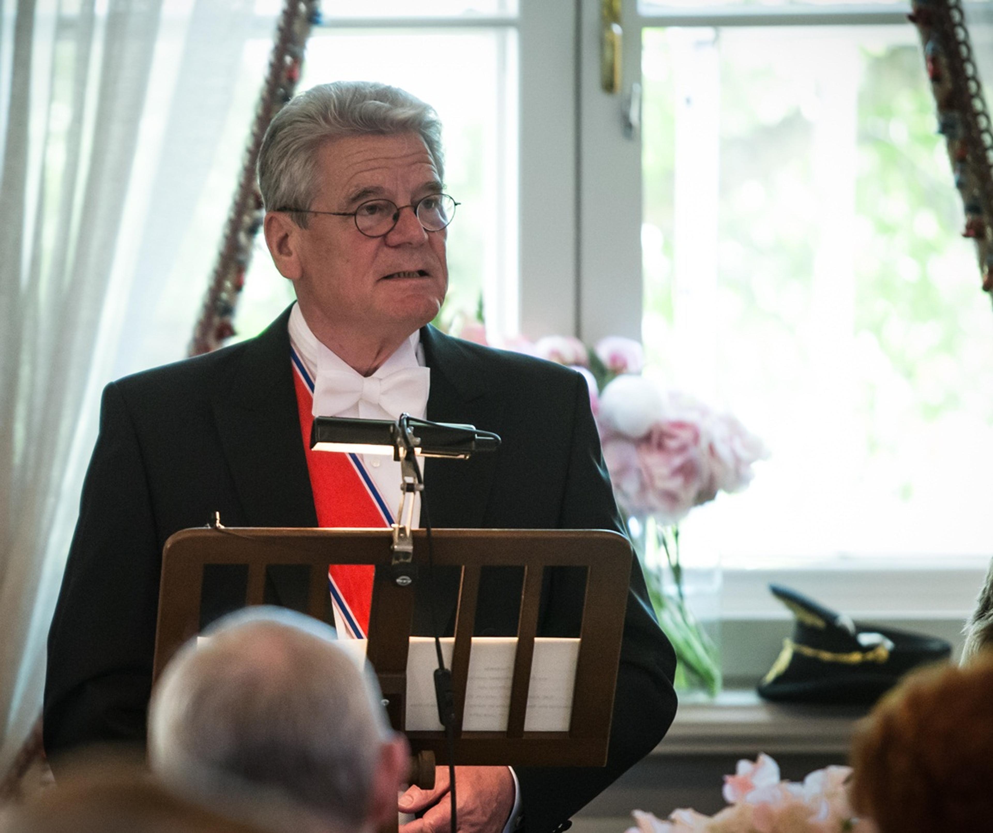 Nå er det offisiell lunsj på Det kongelige slott. Når den er over, vil Kongen og Dronningen ledsage President Gauck og fru Schadt til Nobelinstituttet. Her skal Presidenten innlede til debatt med innlegget «Peace, Security and Human Rights».
