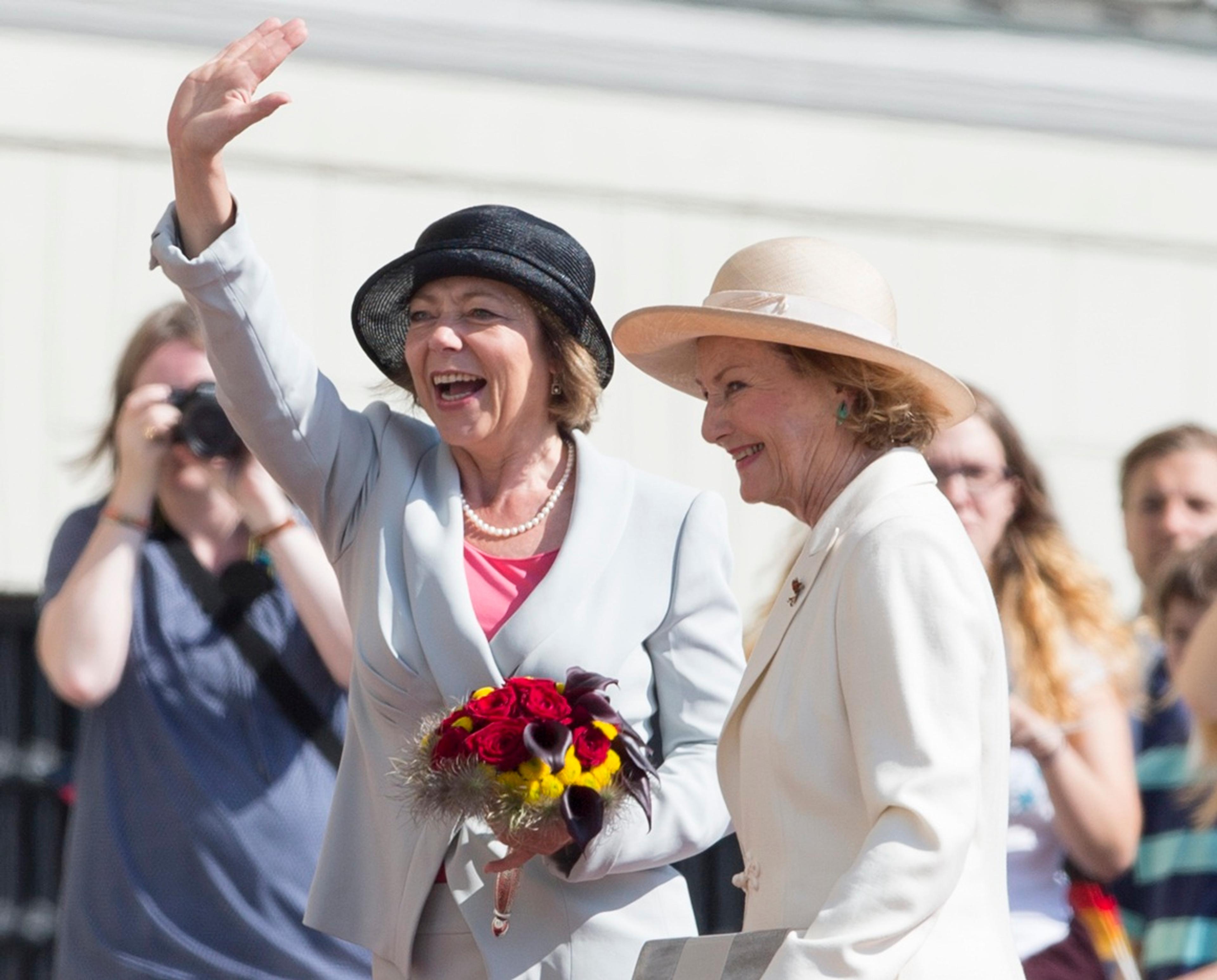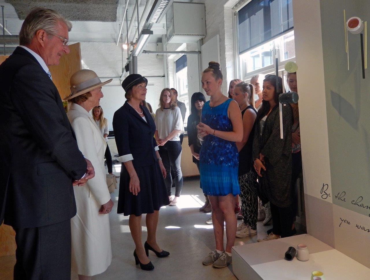 Parallelt besøkte Dronning Sonja og fru Schadt Elvebakken videregående skole. Oslos ordfører Fabian Stang, ønsket Dronningen og fru Schadt velkommen i følge med Utdanningsminister Torbjørn Røe Isaksen.