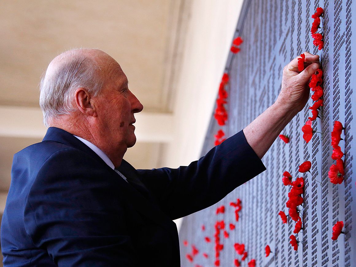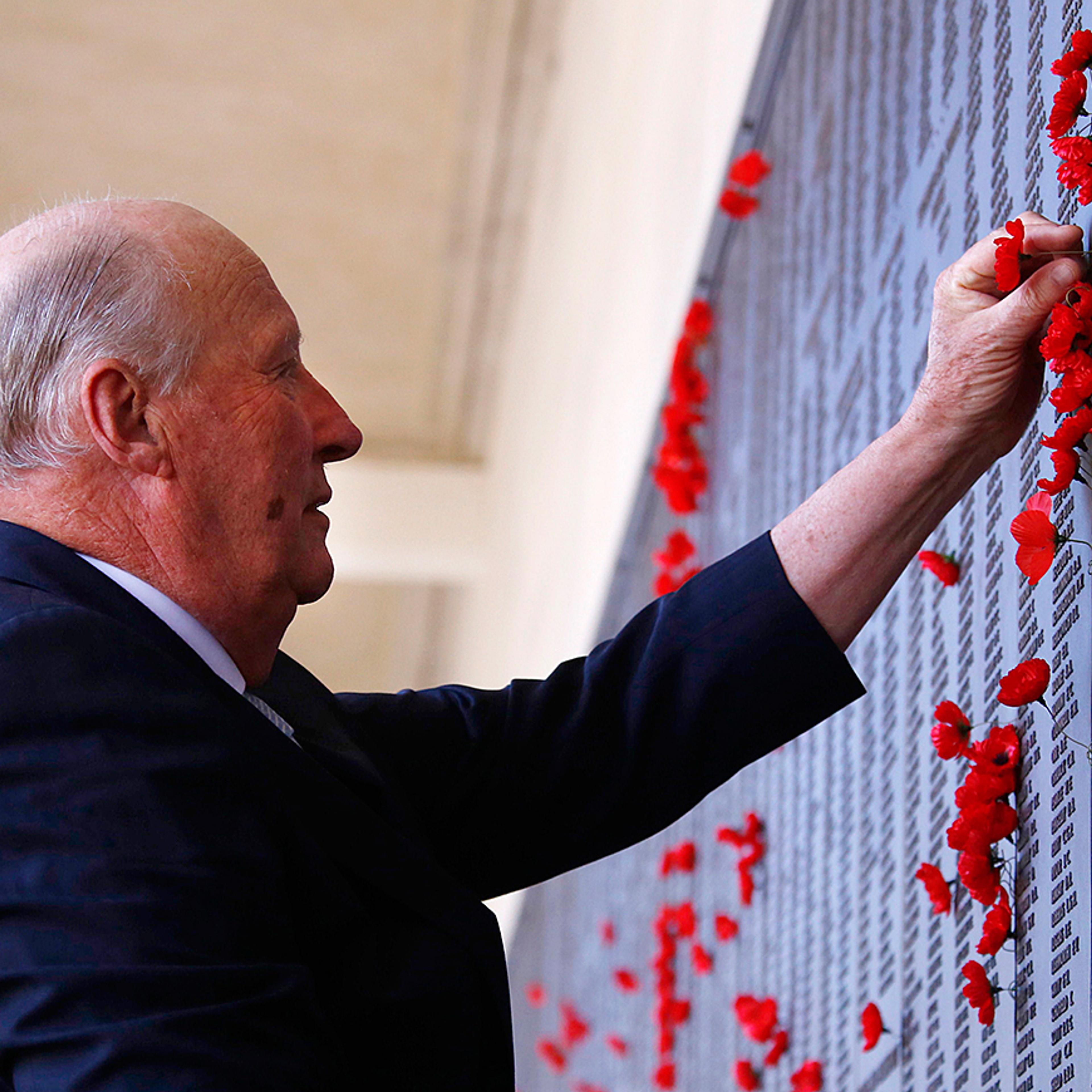 Roll of Honour listar opp namna på soldatane Australia har mista, i bronse. I dag plasserte Kongen og Dronninga kvar sin valmue ved namnet til George Gregory Allman.