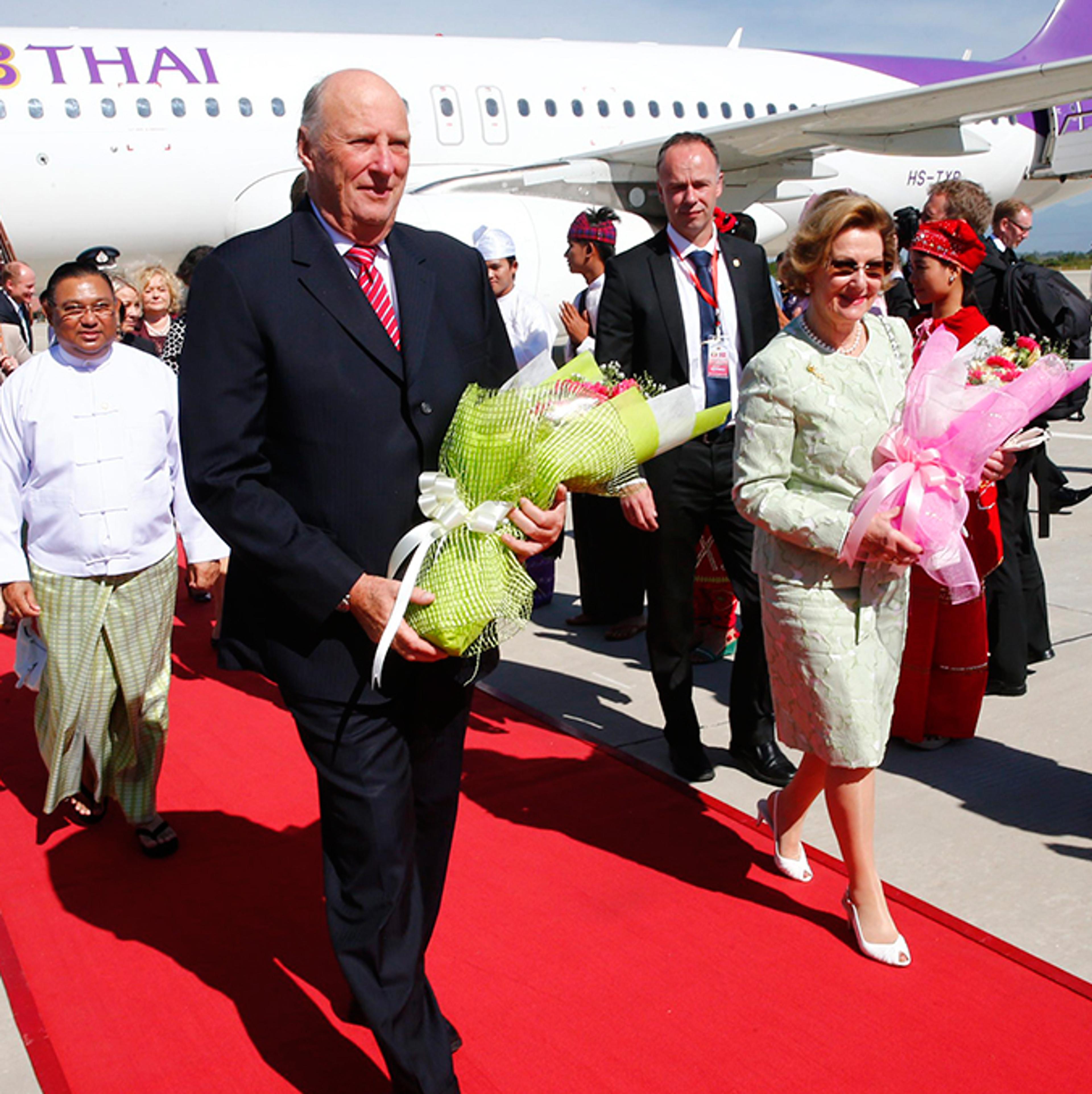 Kongeparet innledet statsbesøk til Myanmar, 1. desember 2014. Norsk støtte til den pågående demokratiseringsprosessen var hovedformålet med det fem dager lange besøket.