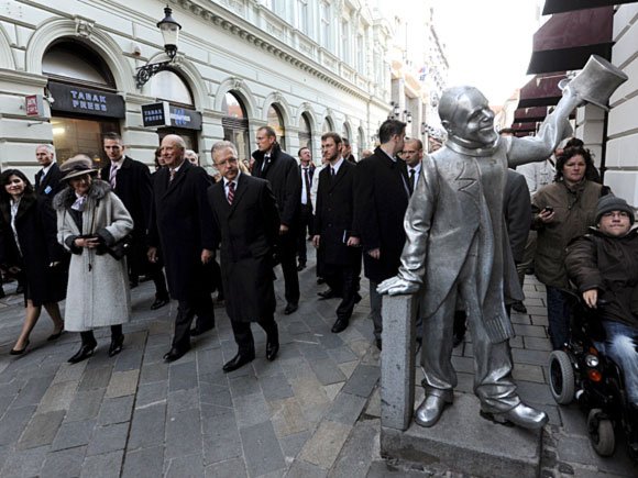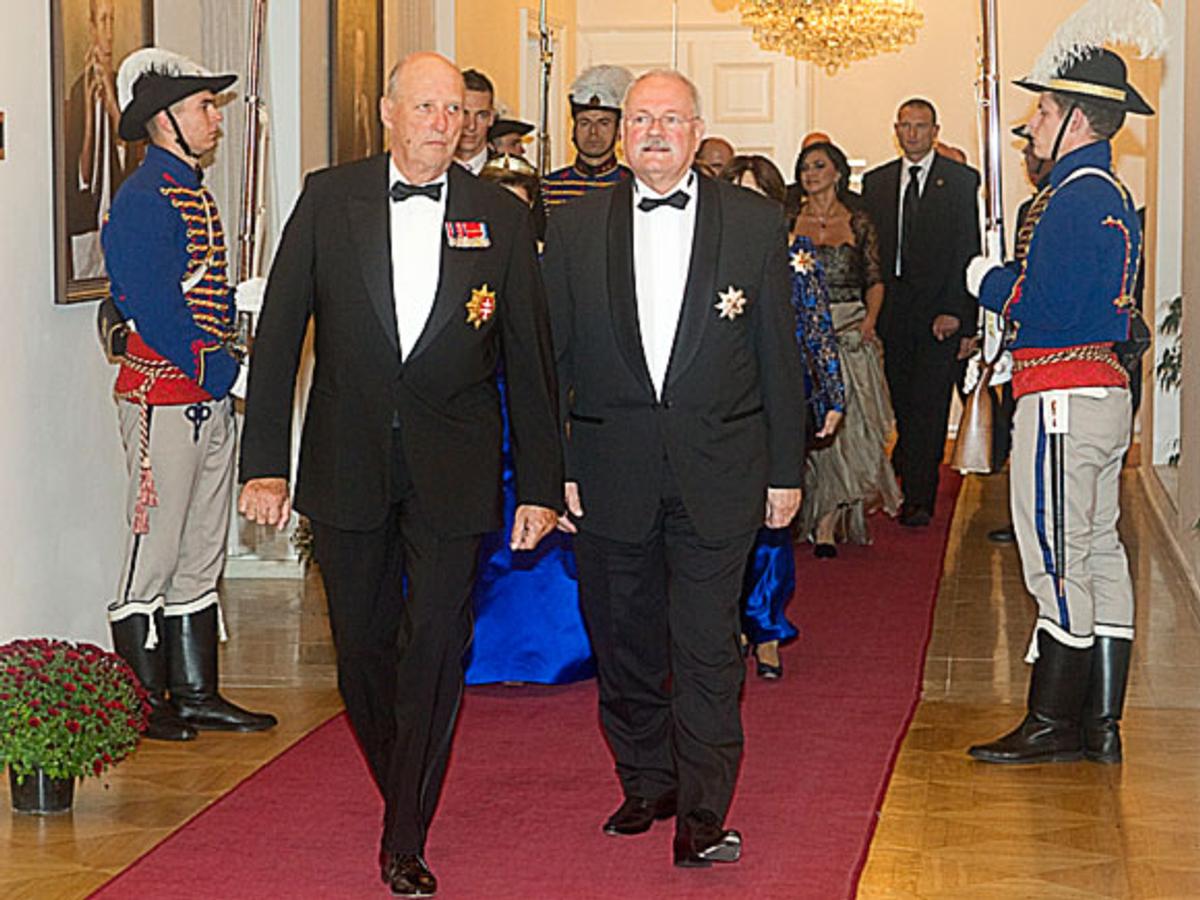 I kveld er Kongen og Dronninga gjester hos presidentparets gjester ved ein gallamiddag i den gamle parlamentsbygningen. Middagen blir halden i Storsalen, som tidlegare blant annet har vorte nytta til konsertar. Både Frantz Lizt og Johannes Brahms har halde konsert her.