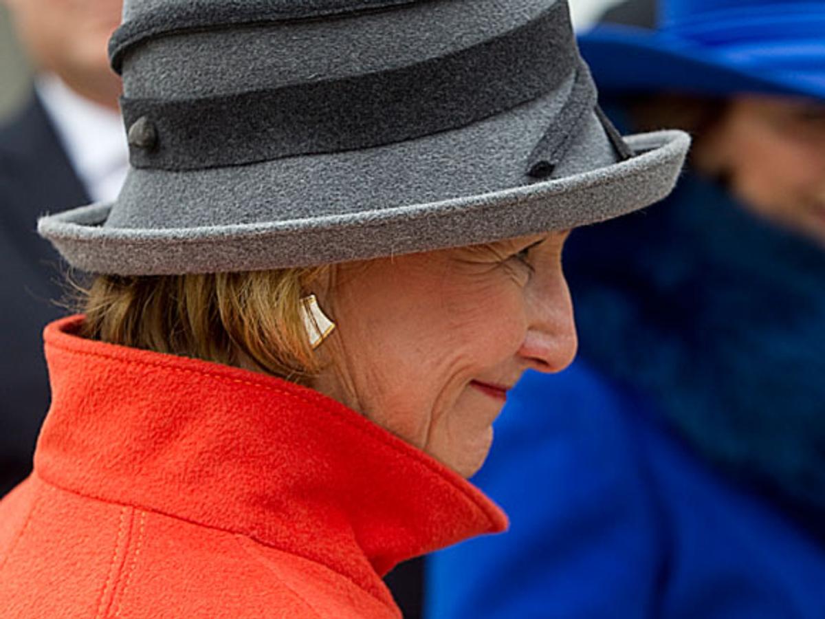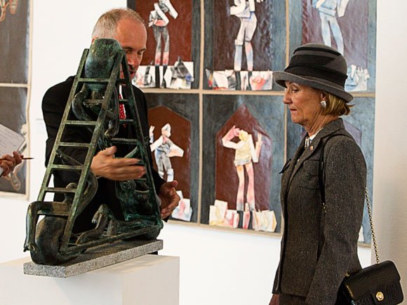 Senteret har ein spesiell arkitektur, ei utforming som minner om ein romersk galei - og ligg omkransa av ein skulpturpark. Dronninga fekk ei omvising i utstillinga og i skulpturparken omkring.