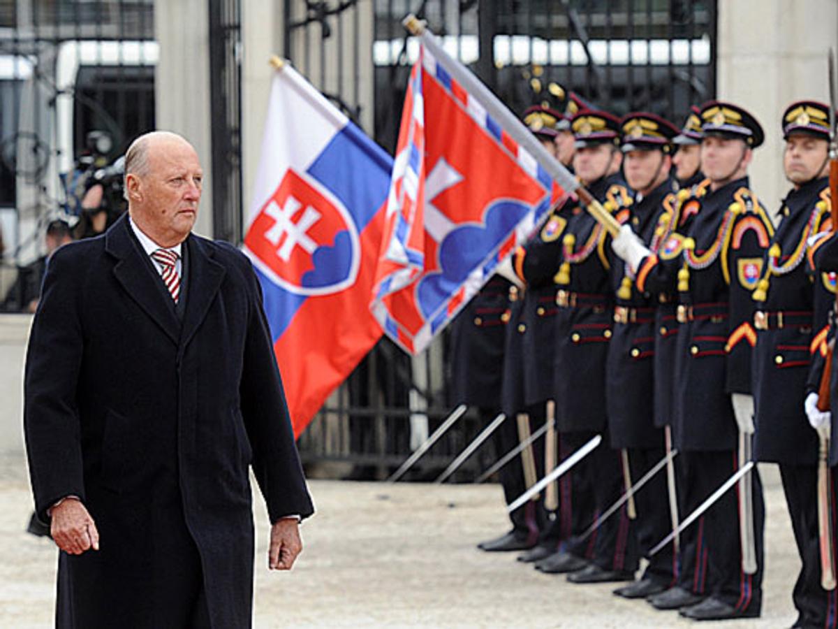 Hans Majestet Kongen og Hennar Majestet Dronninga innleidde besøket til Den slovakiske republikken i dag. Dette er det første norske statsbesøket til Slovakia sidan landet vart oppretta i 1993. Kongeparet vart ønskte velkommen ved presidentpalasset i Bratislava.