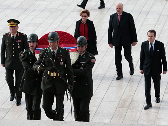 En høytidelig kransenedleggelse ved Atatürks mausoleum innledet besøket i dag morges. Landsfaderen Mustafa Kemal Atatürk ble Tyrkias første president i 1923. Han ledet etableringen av en moderne, sekulær stat etter oppløsningen av det gamle osmanske imperiet.