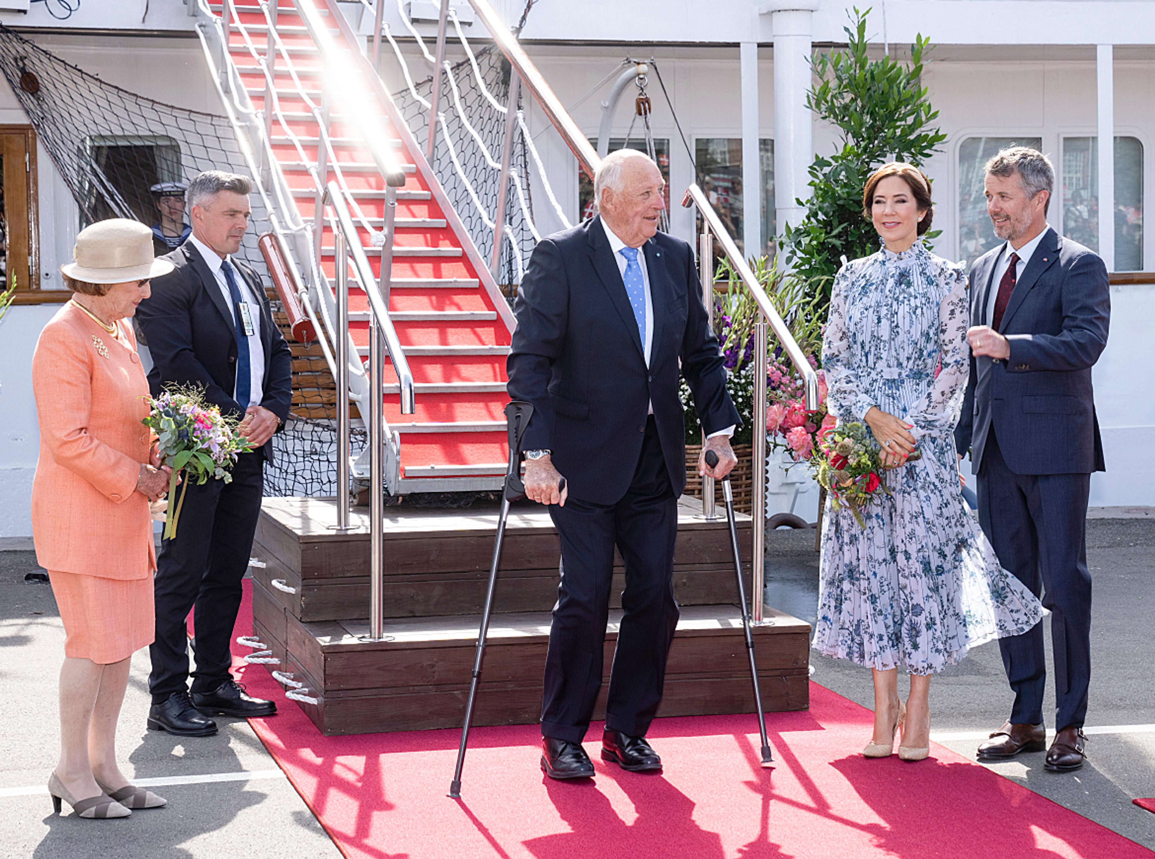 Deres Kongelige Høyheter Kronprins Frederik og Kronprinsesse Mary tok i mot Deres Majesteter Kongen og Dronningen da de gikk i land i Århus. Sammen satte de kurs for Dokk1, der representanter for myndigheter og næringsliv var samlet til seminar om dansk-norsk samarbeid innen grønn industri og handel.