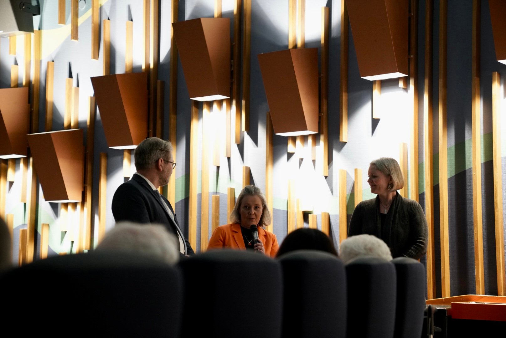 Ordfører Rune Edvardsen i Narvik kommune, statsforvalter Tom Cato Karlsen i Nordland, produsent i Nordisk film Live Bonnevie, kinosjef ved Aurora kino Narvik Renee Katrin Bjørstad og administrerende direktør for Aurora kino Geir Martin Jensen var også til stede under filmvisningen og samtalen i etterkant i kinokafeen.