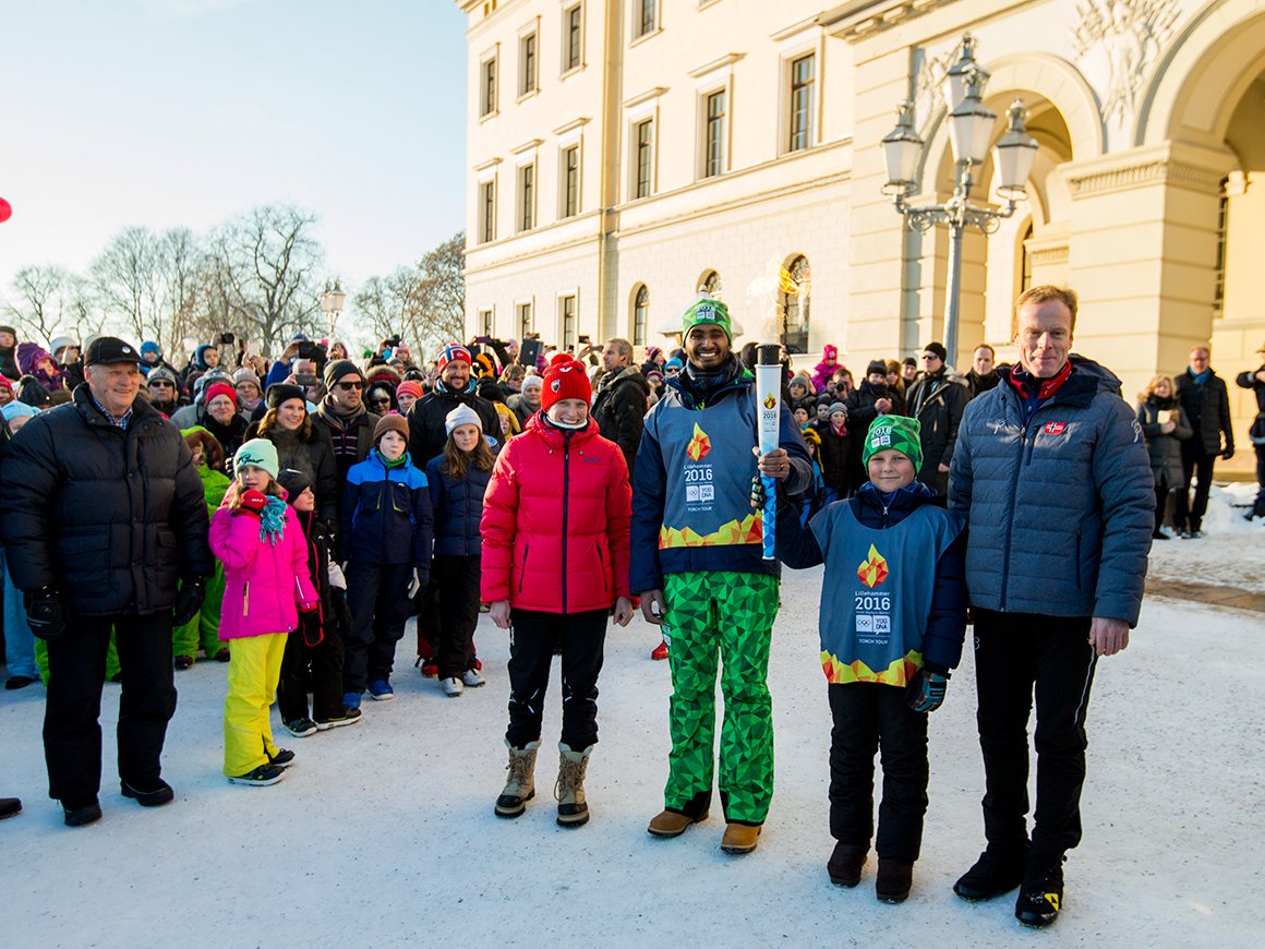 I februar starter Ungdoms-OL på Lillehammer. I dag ble fakkelen med OL-ilden til ungdomslekene ført over Slottsplassen. Det var Prins Sverre Magnus som hadde æren av å bære ilden, med bistand fra Bjørn Dæhlie, Tora Berger og Sajandan Rutthira, som nylig ble kåret til årets unge ildsjel under Idrettsgallaen på Lillehammer.