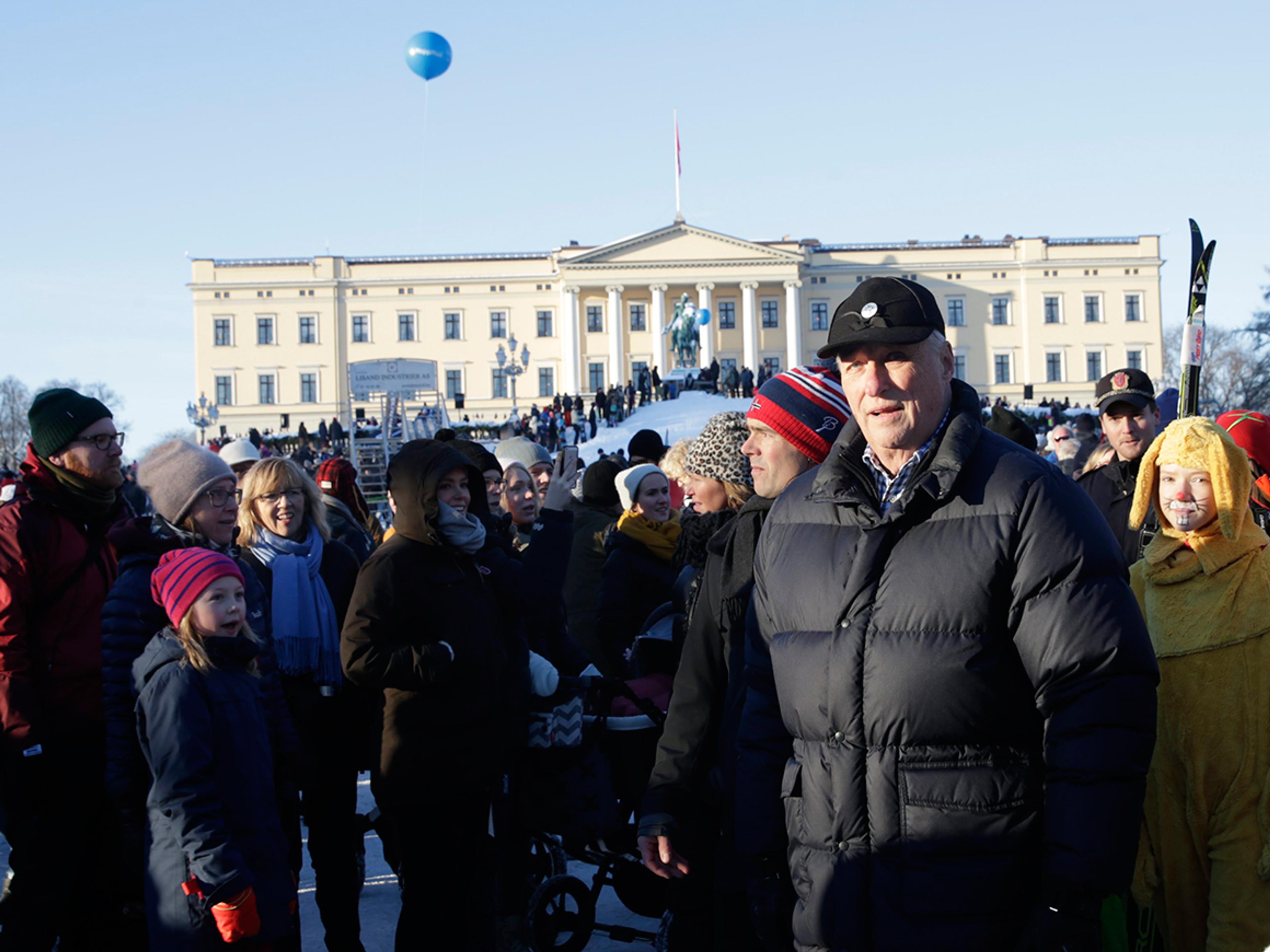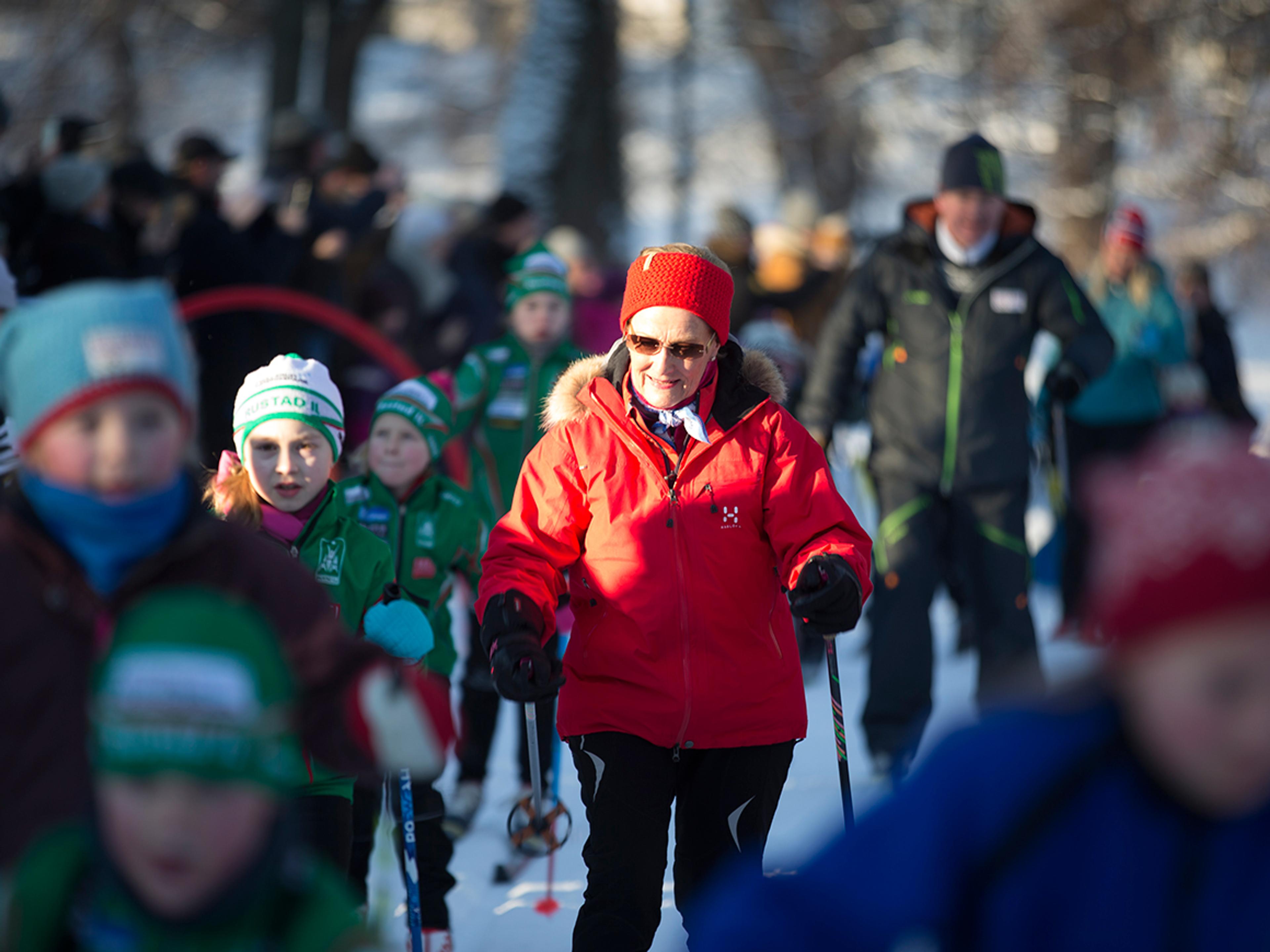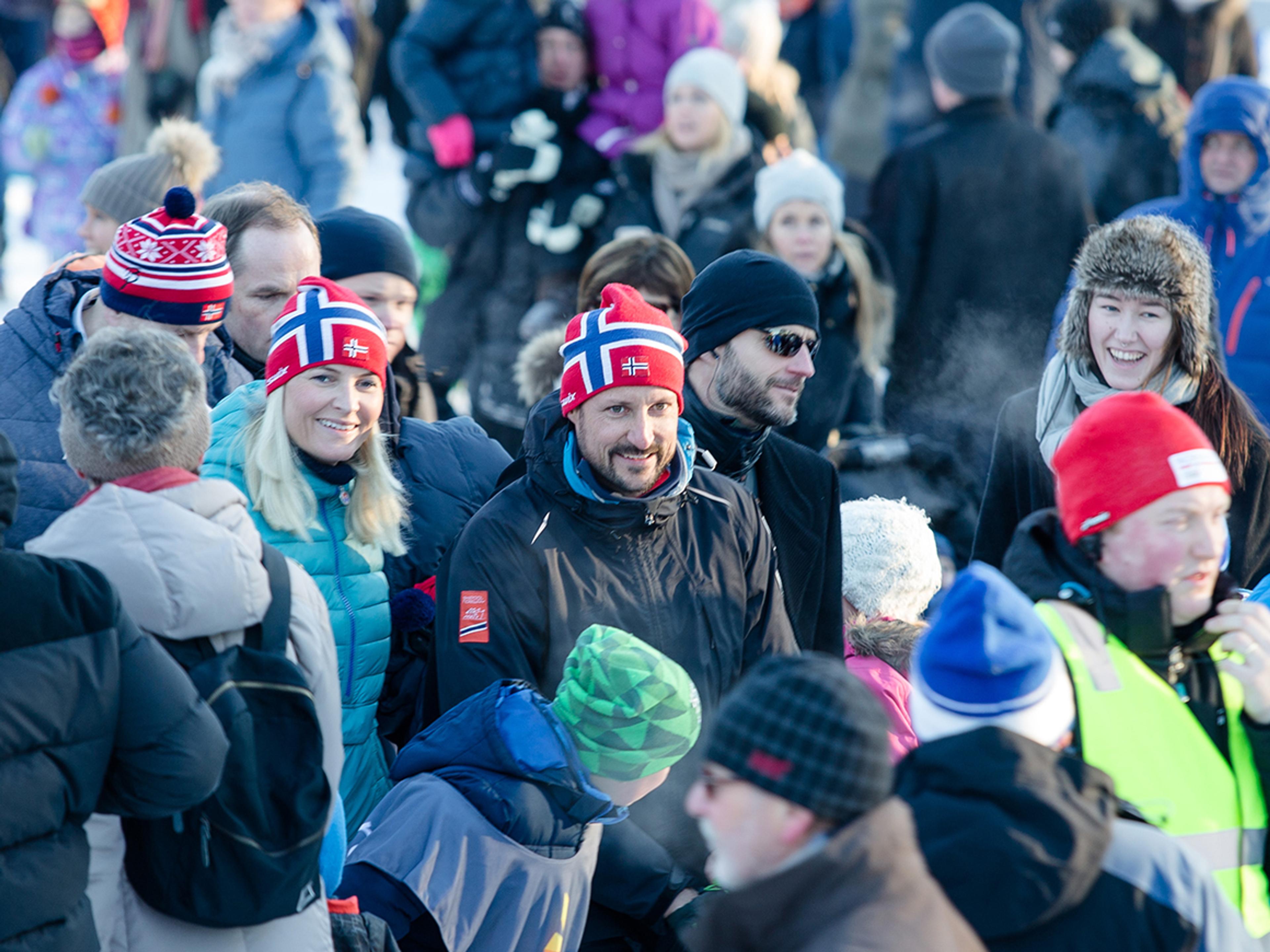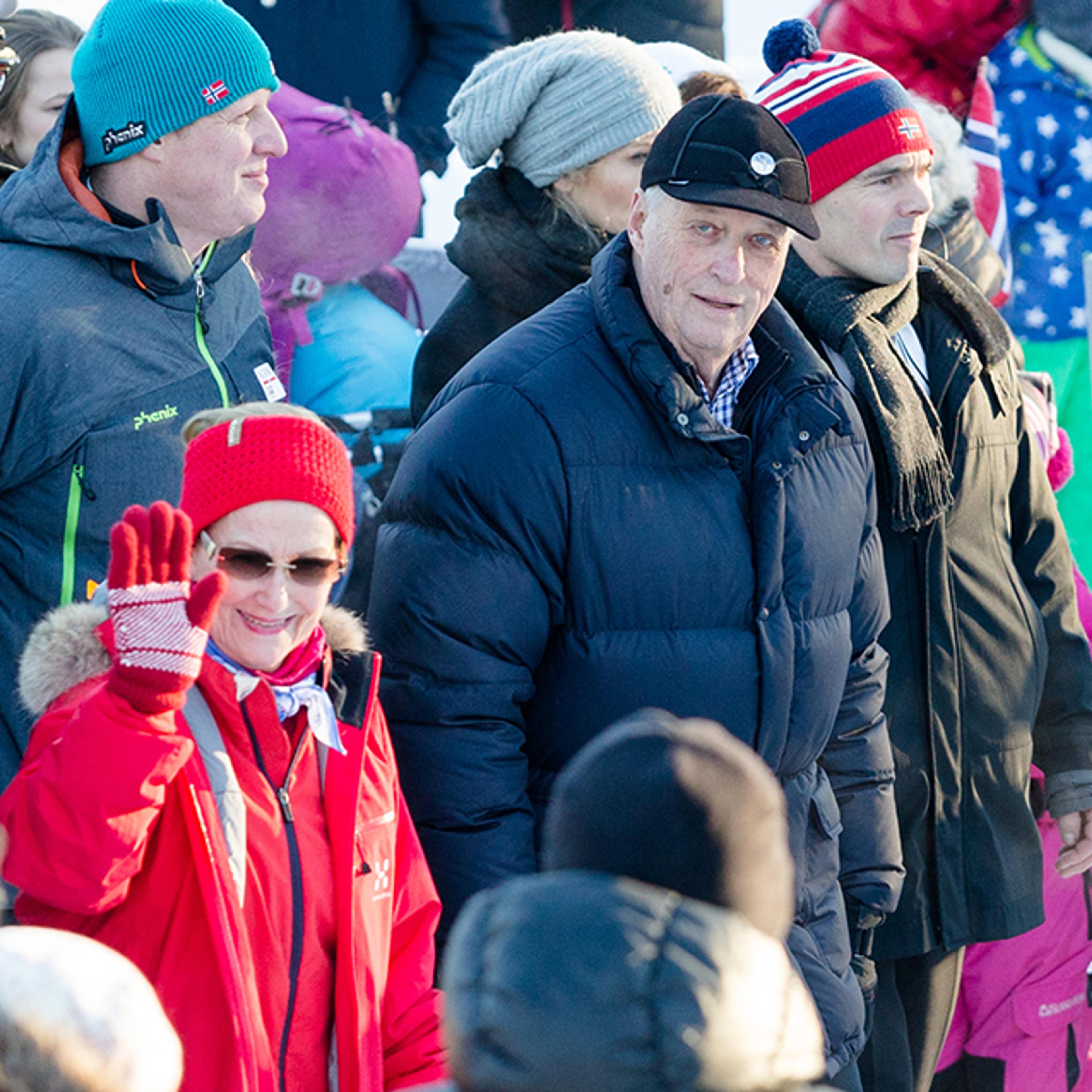 Etter gudstjenesten kom også Kongefamilien ut på plassen - både for å møte noen av de flere tusen som hygget seg der ute og for selv å prøve aktivitetene. Hennes Majestet Dronningen spente på seg skiene, og både Dronning Sonja, Kronprinsparet og Prinsesse Ingrid Alexandra testet langrennsløypene i parken.