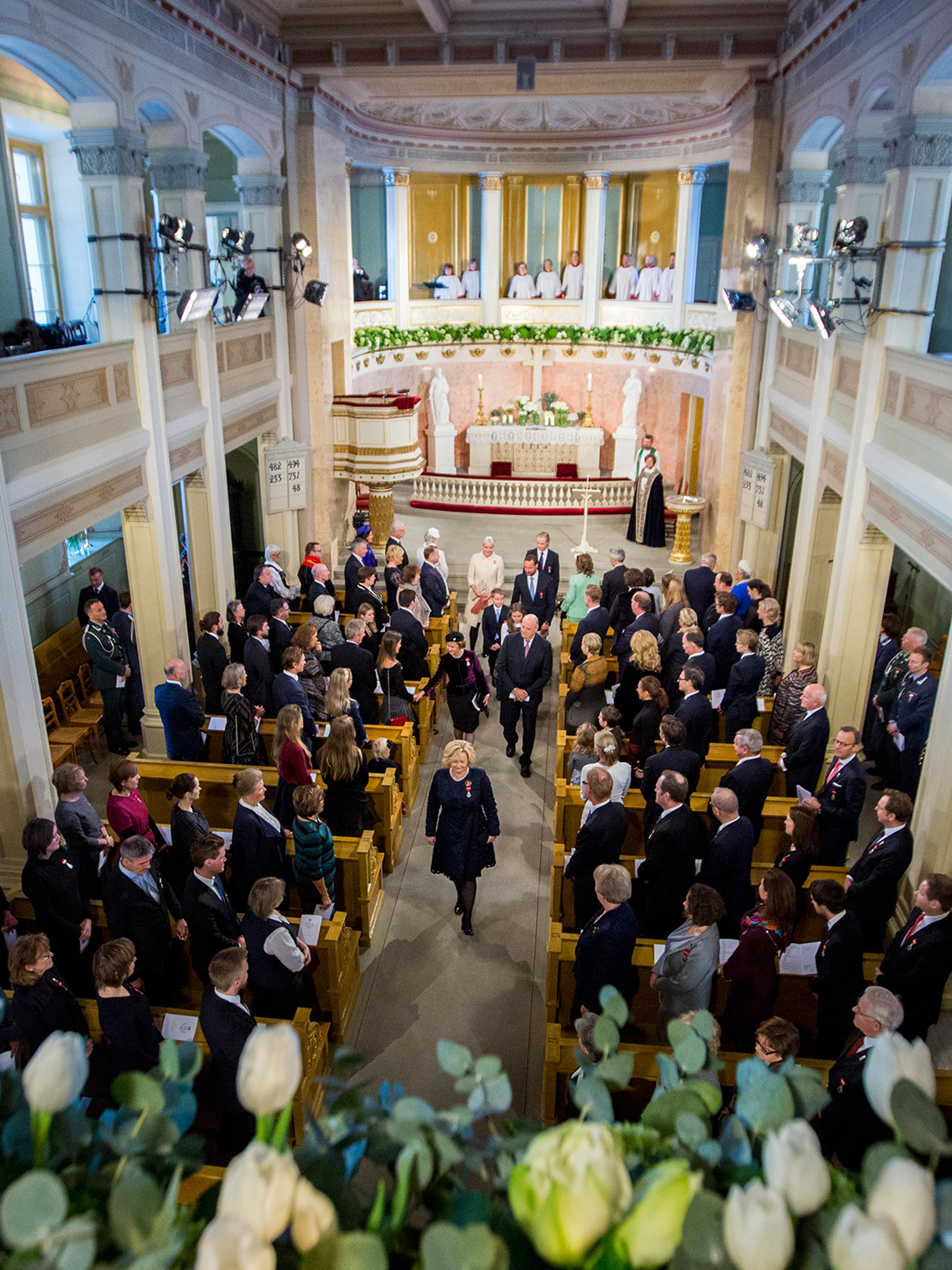 Preses i den norske kirke, biskop Helga Haugland Byfuglien forrettet, med bistand fra studentprest Bjørn Eirik Bjerkreim-Bentzen. Sangere fra Oslo domkor ga tonefølge sammen med trompetist Ole Edvard Antonsen. Prinsesse Märtha Louise var en av de tre skriftleserne.