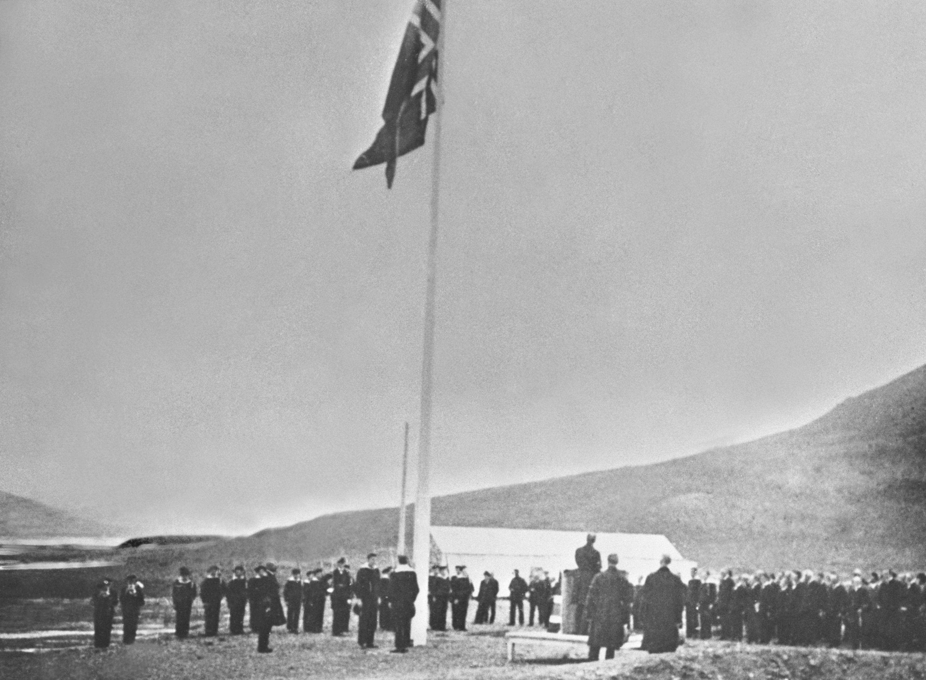Nøyaktig 100 år etter at flagget ble heist på Svalbard ble det heist igjen under markeringen ved bautaen på Skjæringa i Longyearbyen.