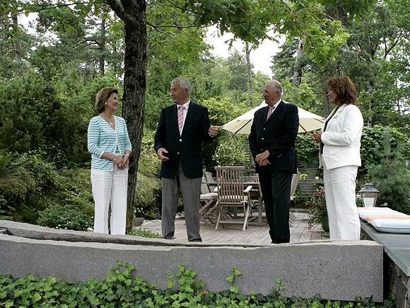 Søndag var Stortingspresident Torbjørn Jagland og hans kone, Hanne Grotjord, invitert til lunsj på Mågerø, der de fikk se gaven ferdig installert.