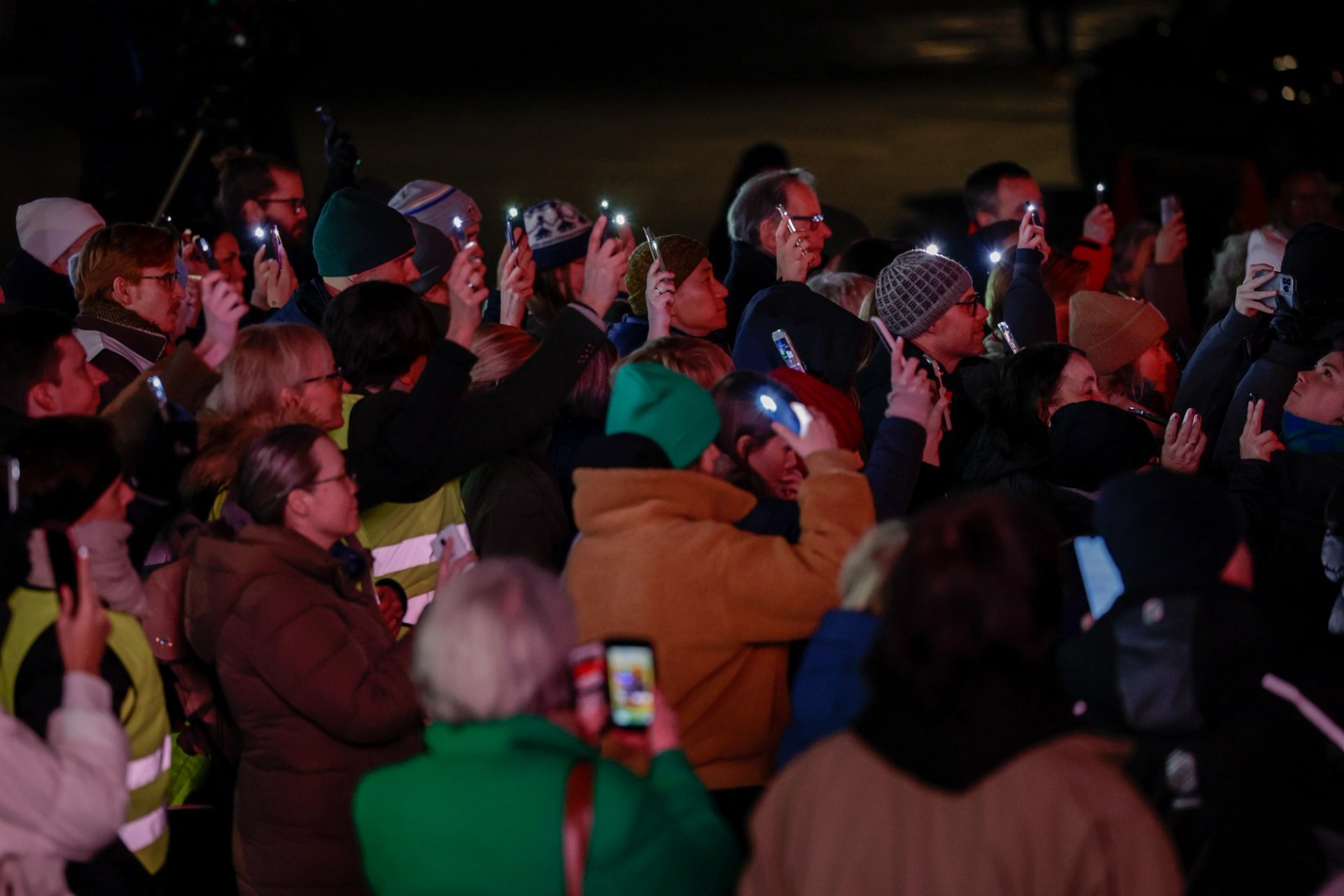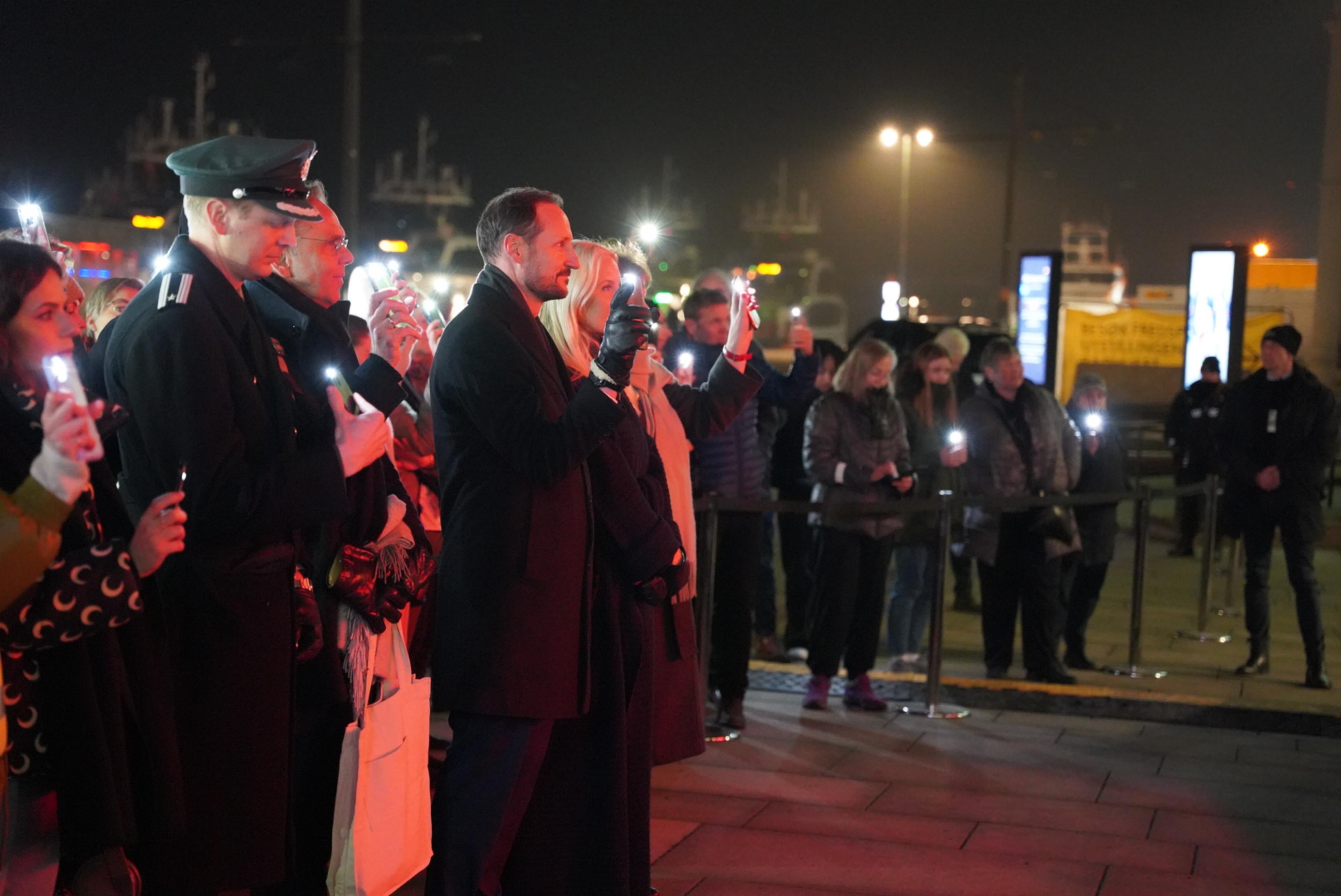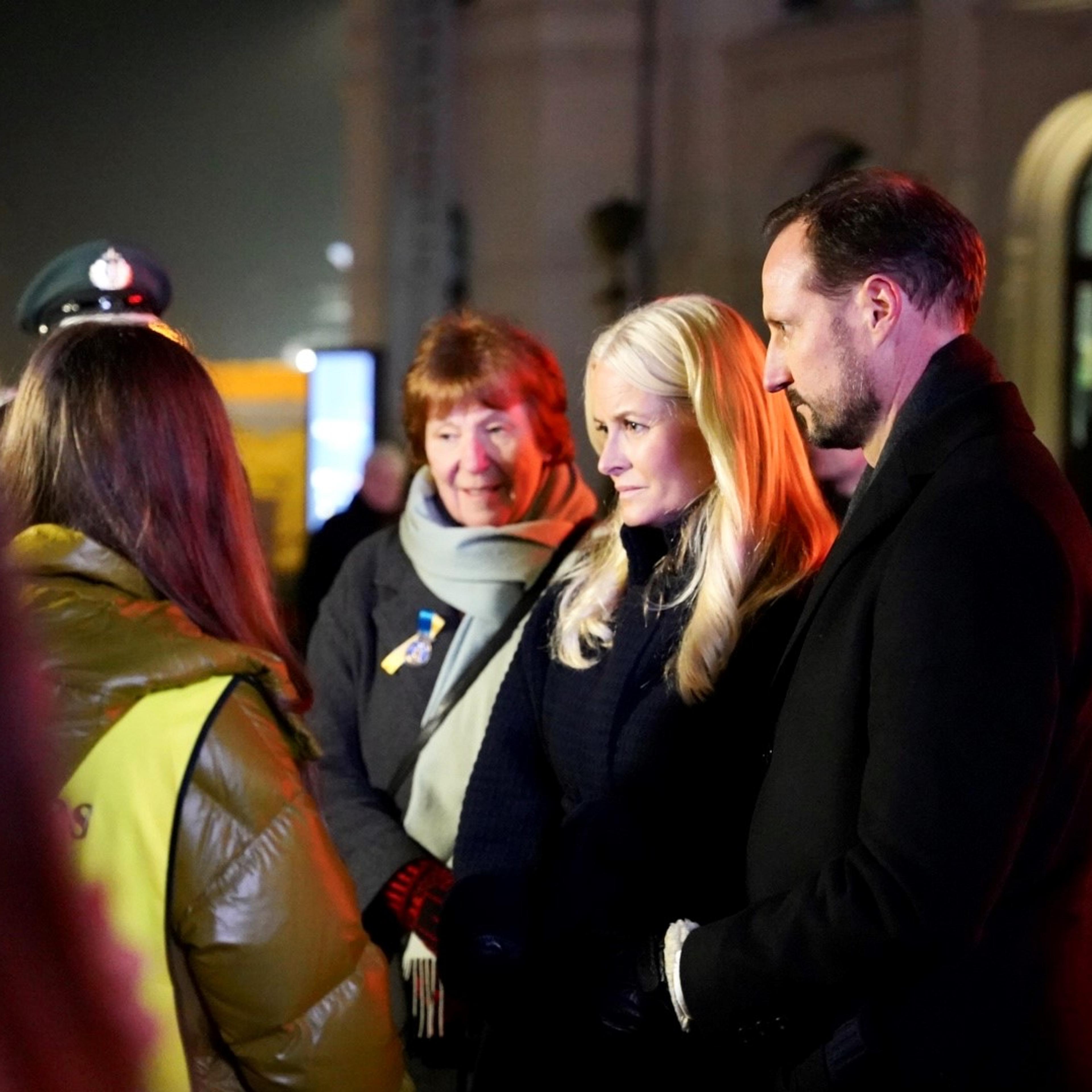 Deres Kongelige Høyheter Kronprinsen og Kronprinsessen var til stede under en markering til støtte for ofrene for krigen i Ukraina utenfor Nobels fredssenter i Oslo i kveld.
