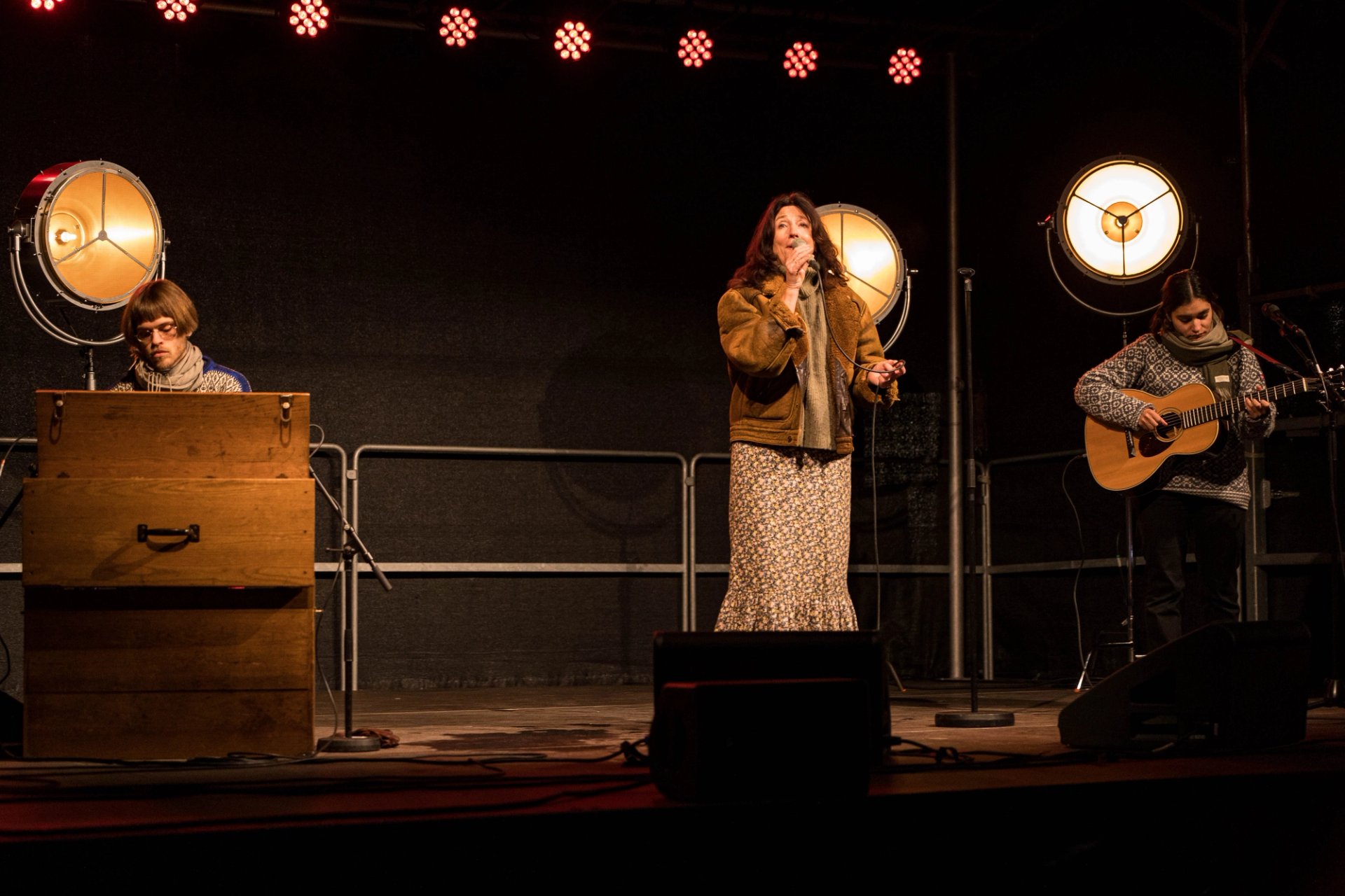 Artistene Maj Britt Andersen og Daniela Reyes fremførte "Ballongvisa".
