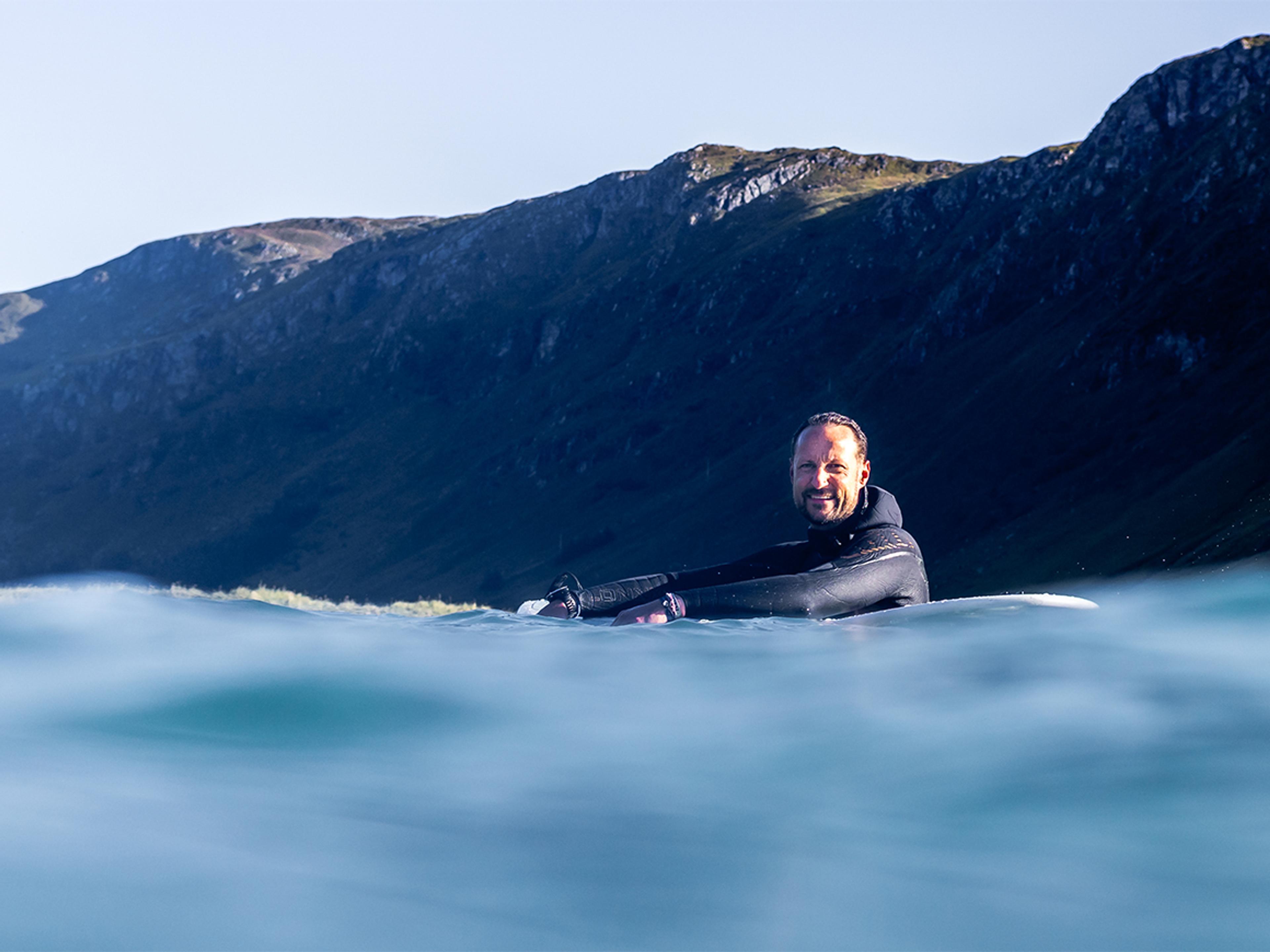 Dette er fra en tidligere anledning, da Kronprins Haakon surfet utenfor Sunnmøre:
