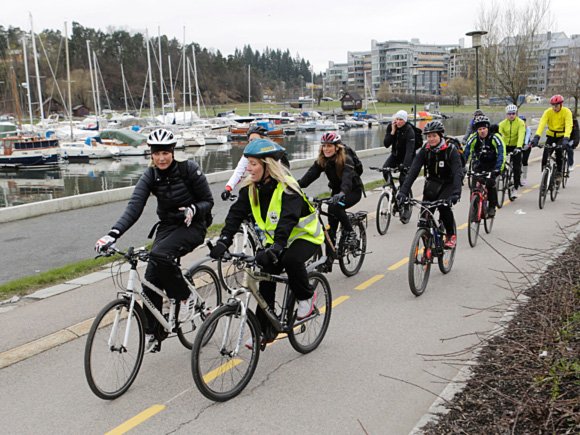 For Kronprinsesse Mette-Marit starta sykkelturen på sett og vis rett før påske, da Skaugum deltok i energisparekampanjen Earth Hour. På Twitter lova Kronprinsessa å sykle til jobb dersom Kronprins Haakon skrudde av Mac’en. Fleire andre melde seg på, og både Jan Åge Fjørtoft, Marte Stokstad og Svein Tore Bergestuen slo i dag følgje med Kronprinsessa på turen frå Skaugum til Slottet.